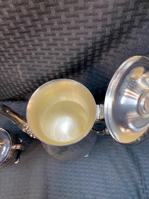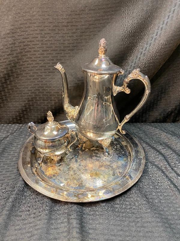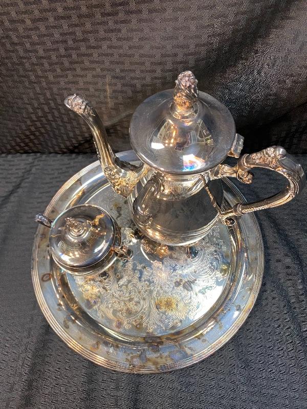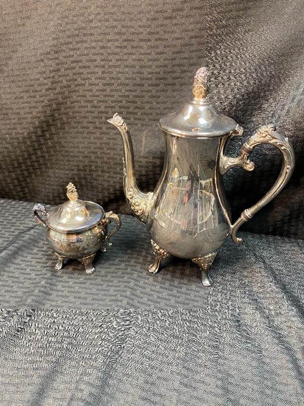 Silverplate Tea Pot Sugar Bowl and Plate Suffolk Silversmith YD#012-1120-00094