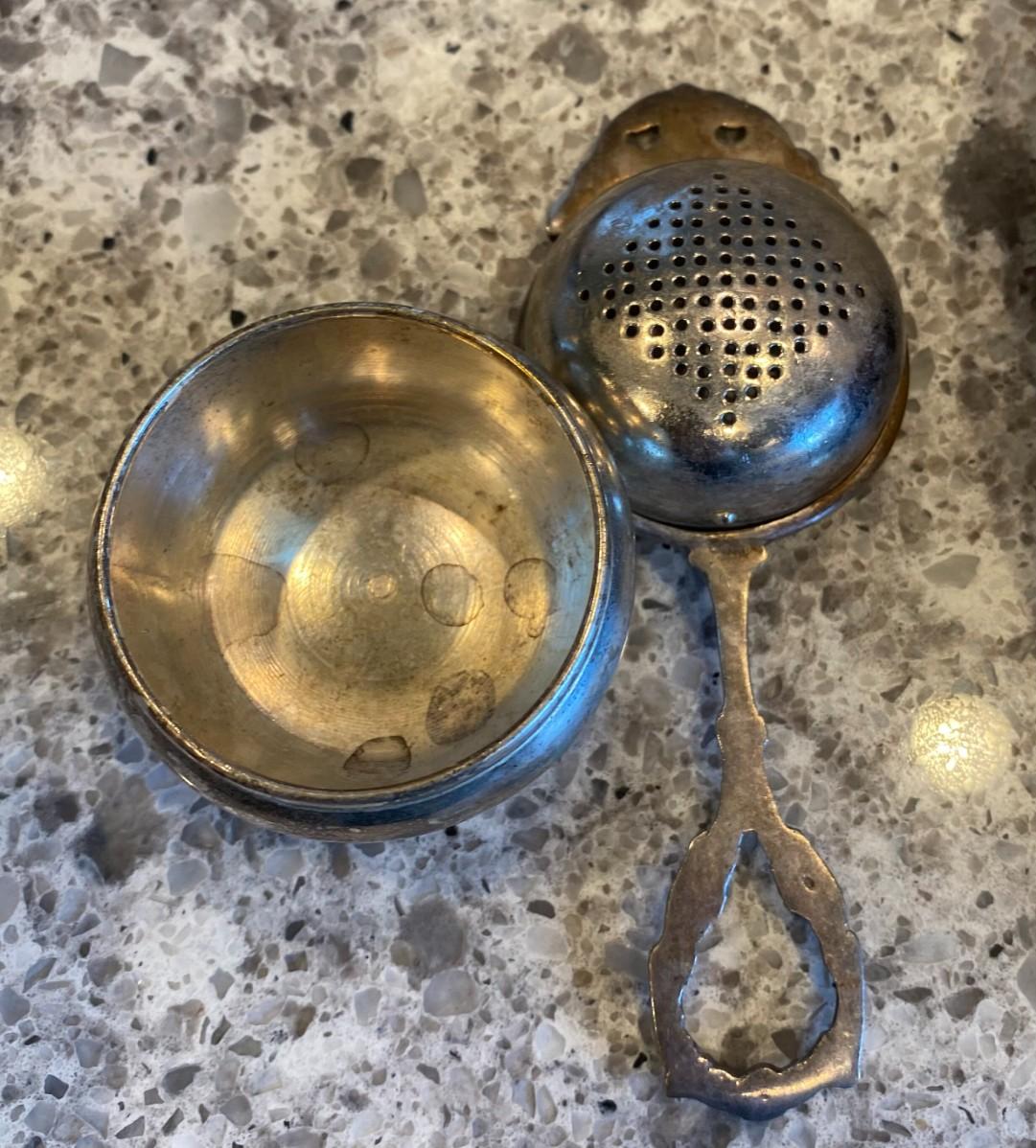 silverplate tea strainer with bowl.