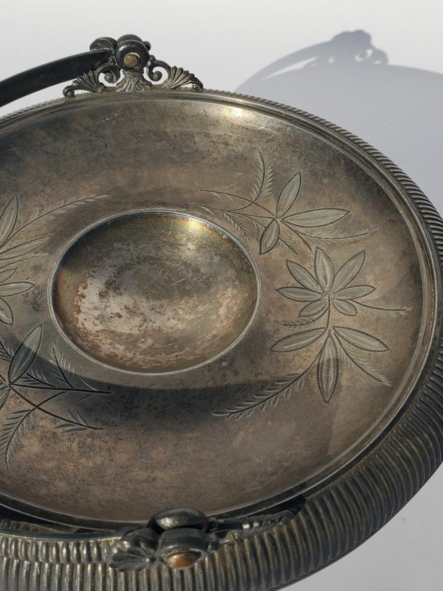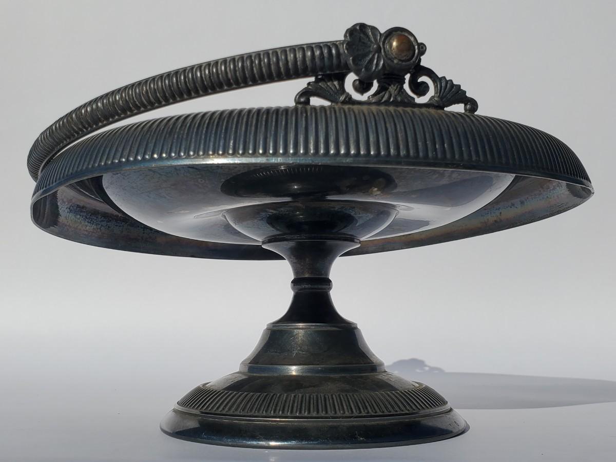 Silver-plated pedestal fruit basket w/handle
