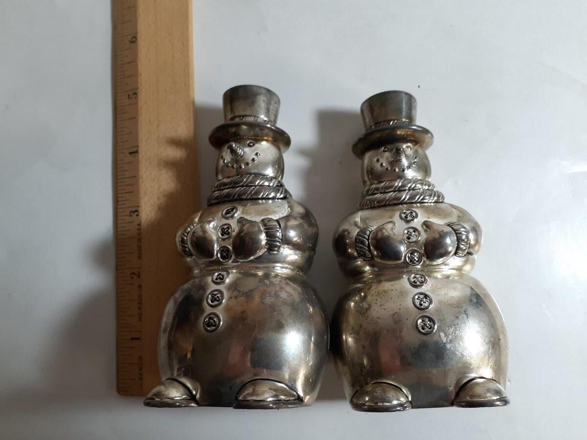 Silverplated Snowman salt and pepper shakers