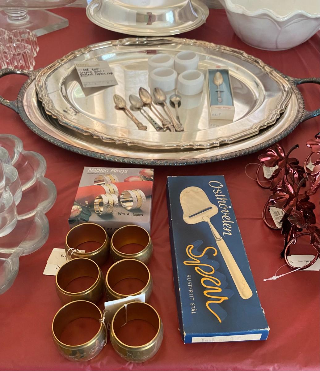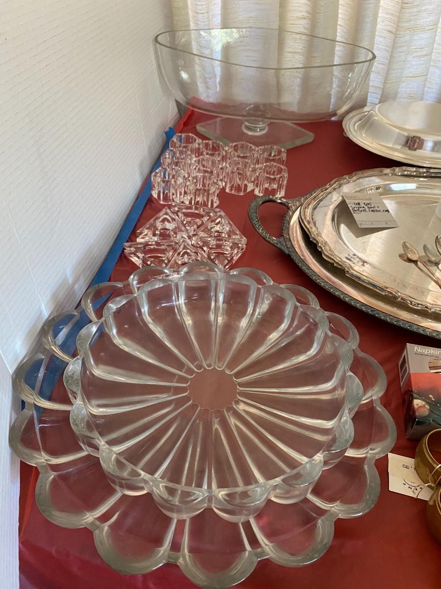 Silverplated trays large 2 piece Cystal impressive vintage flower centerpiece float bowl Napkin rings