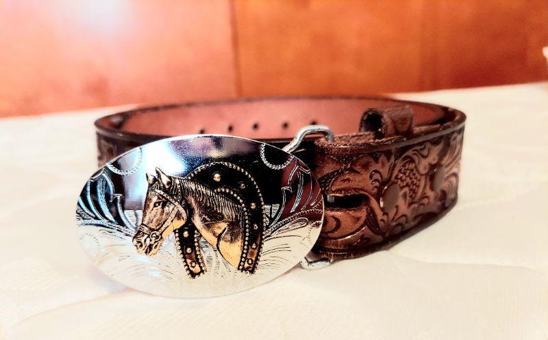 SILVERTONE BELT BUCKLE W/ LEATHER BELT