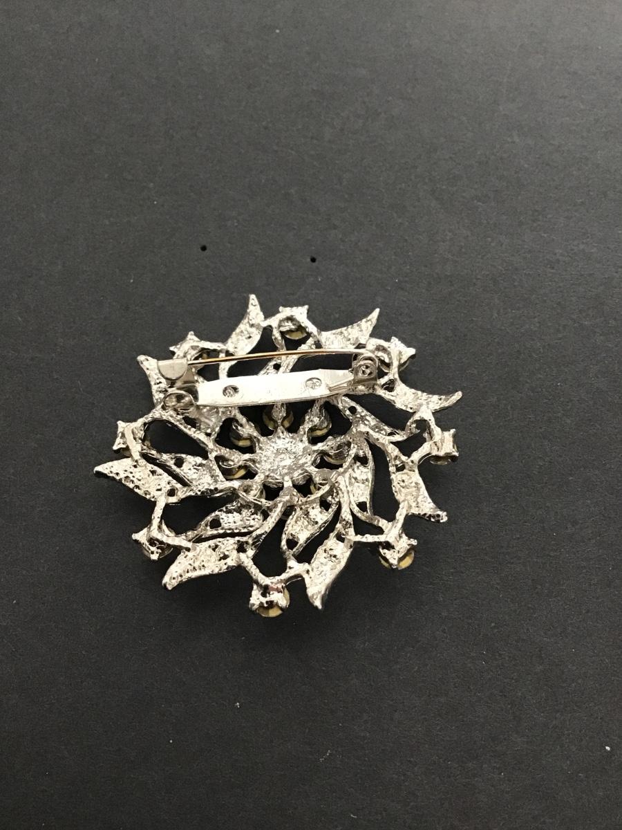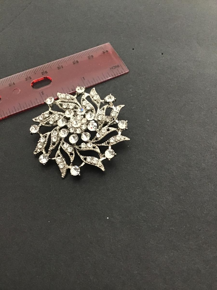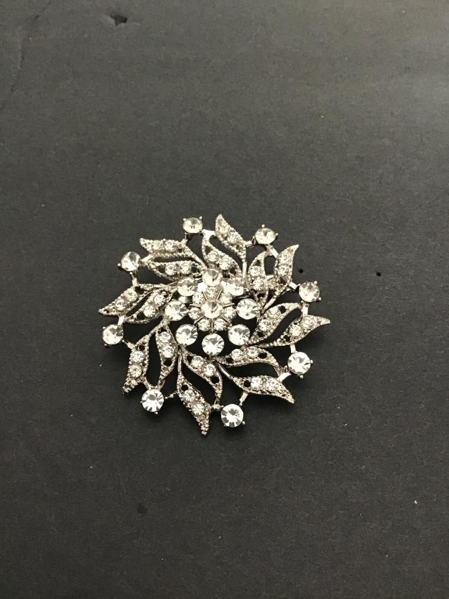 Silvertone clear rhinestone brooch. Please see attached photos.