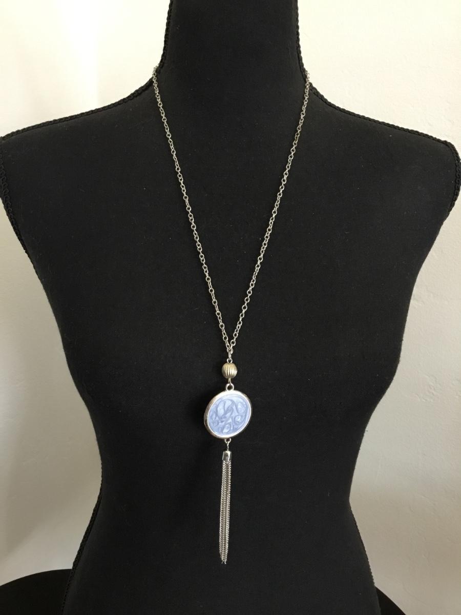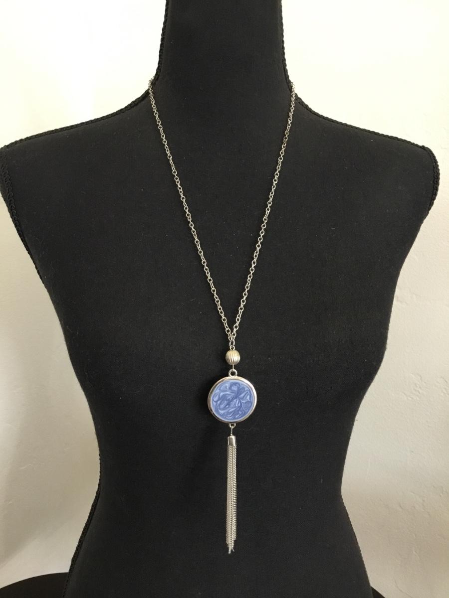 Silver-tone enamel tassel necklace