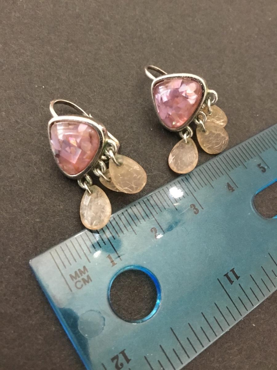 Silvertone faux opal dangle earrings