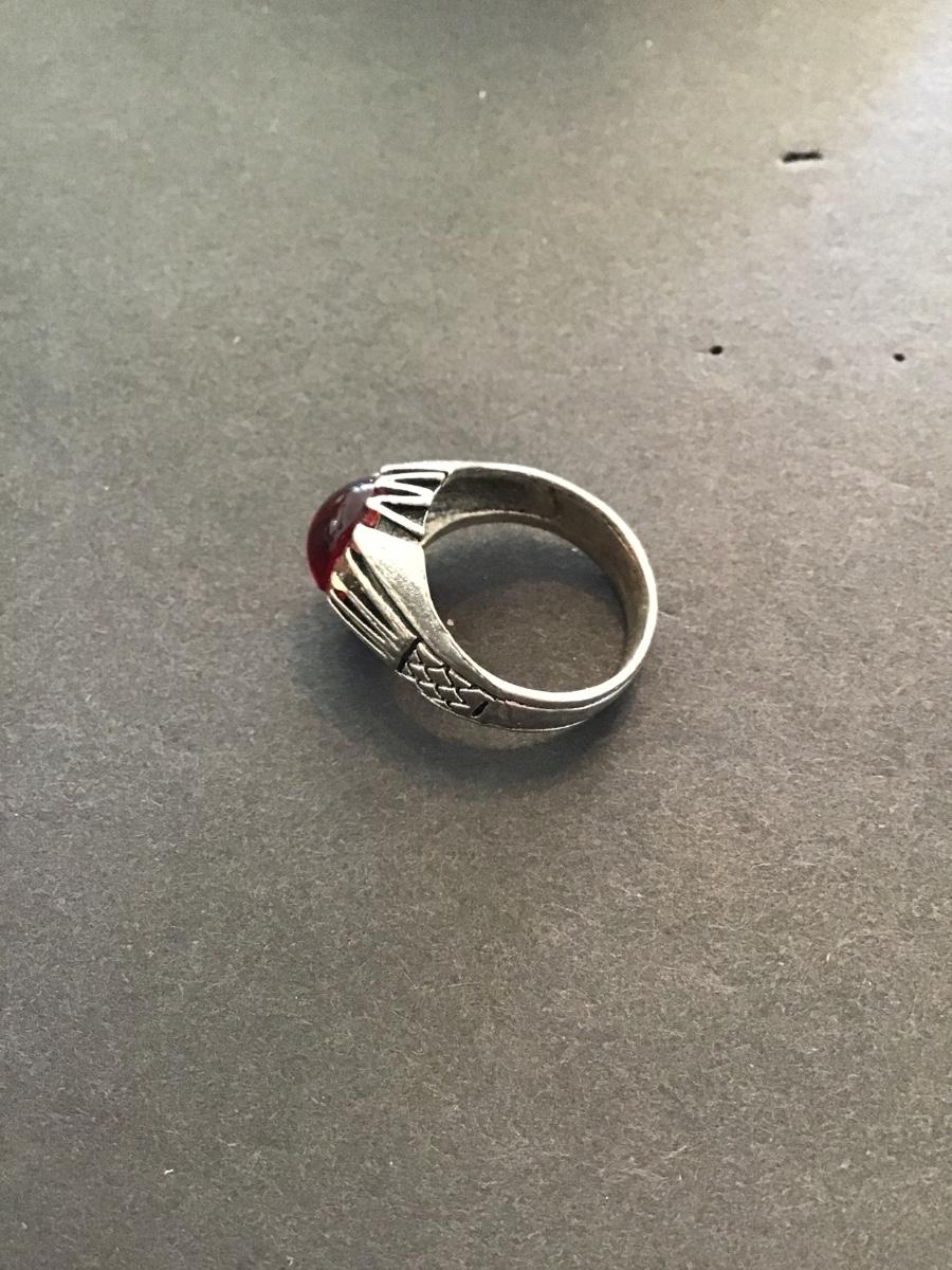 Silver tone faux Red-stone fashion statement ring please see attached photos
