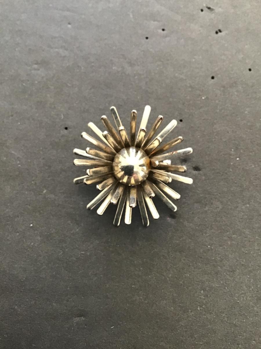 Silvertone flower brooch