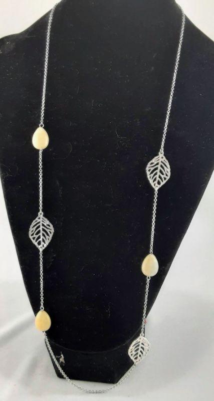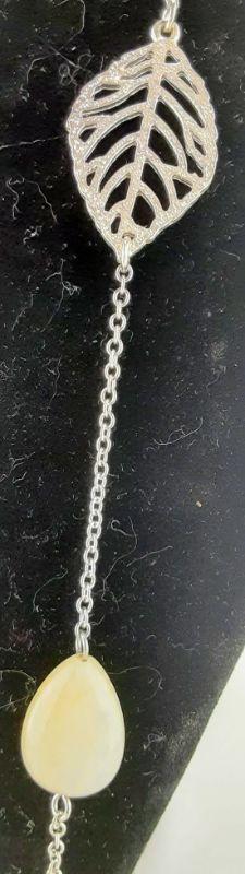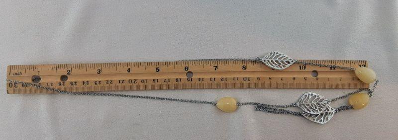 Silvertone Leaves Necklace and Yellow Gemstones