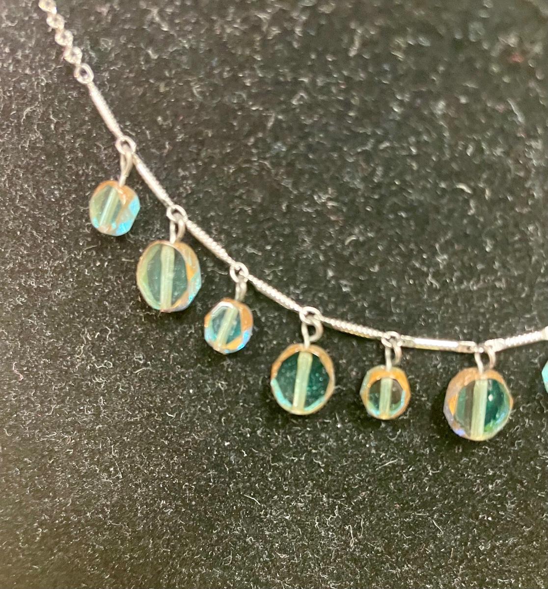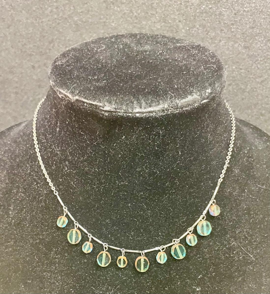 Silvertone Necklace with Green Translucent Stones