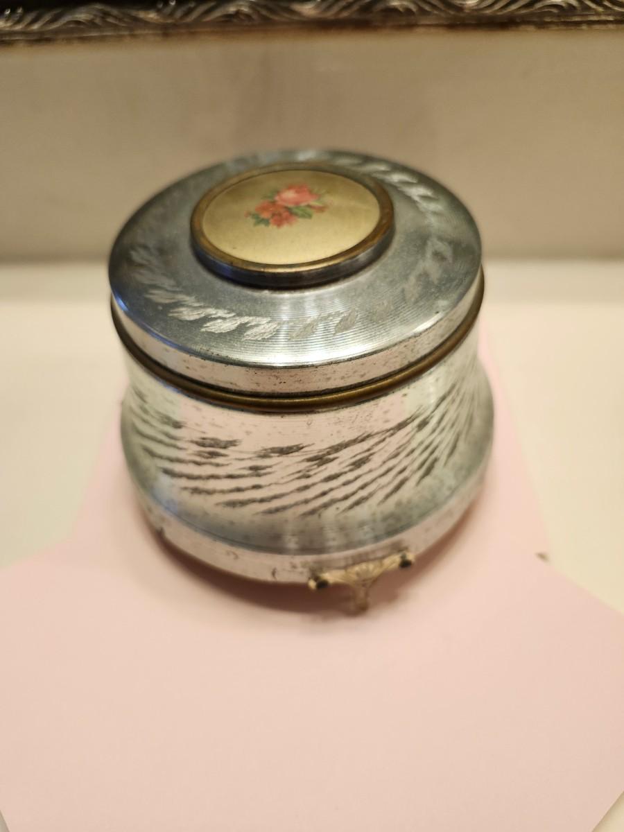 Unbranded vintage Silvertone Powder Puff – Trinket Box- Music Box (wind up)