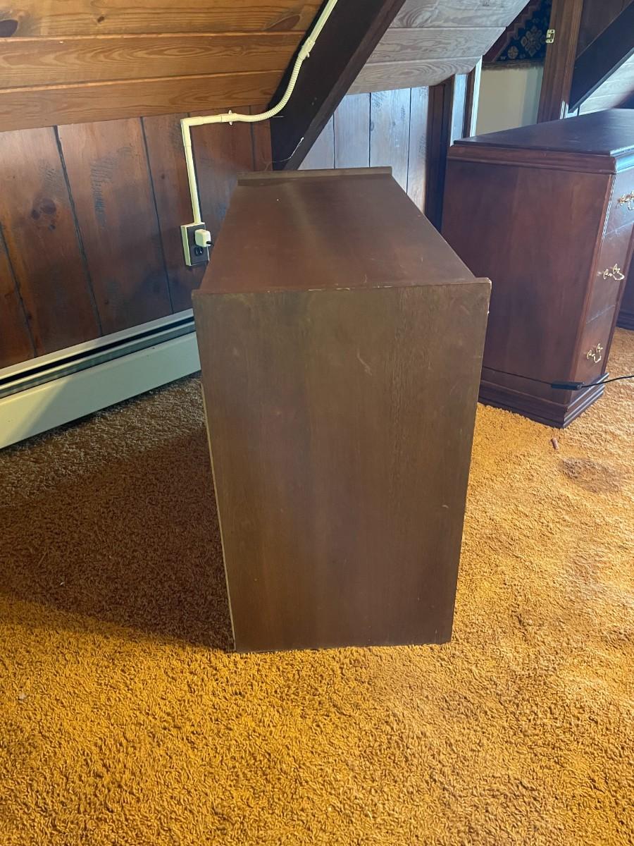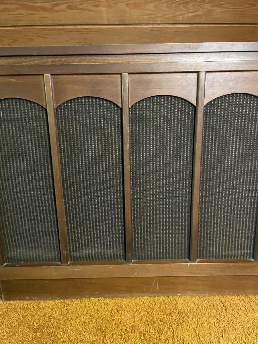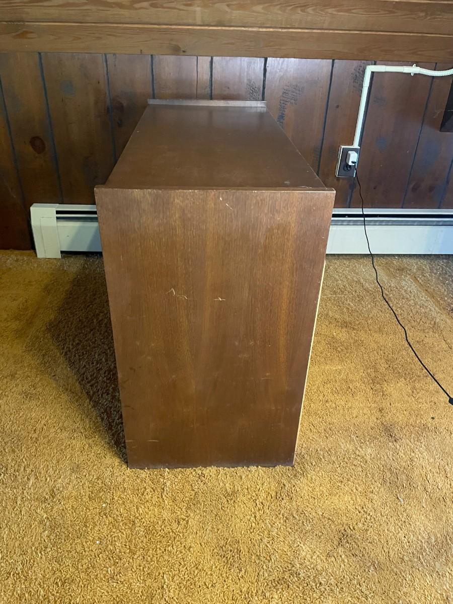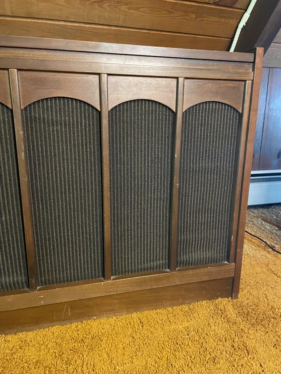 The piece powers on when plugged in but makes a humming noise. Overall, it is in good condition. 36H x 15W x 26H.