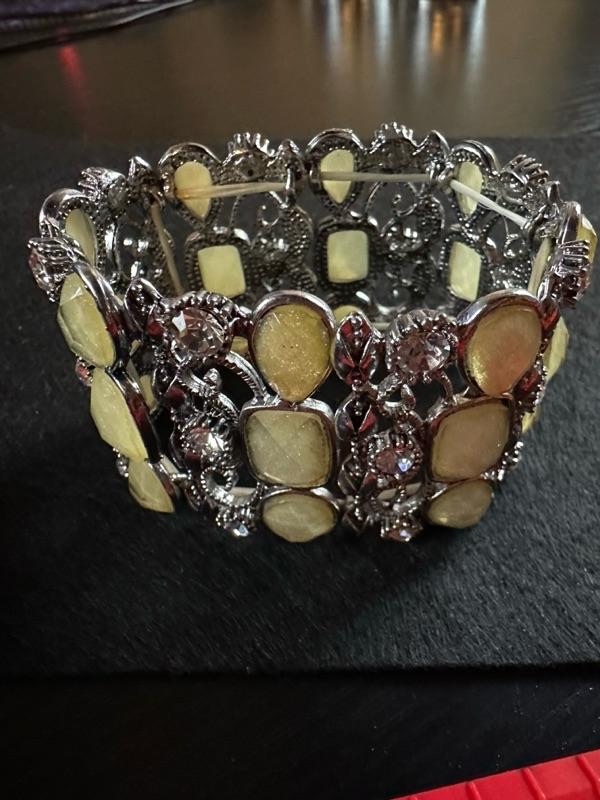 Silvertone Rhinestone Green Bead Stretch Bracelet