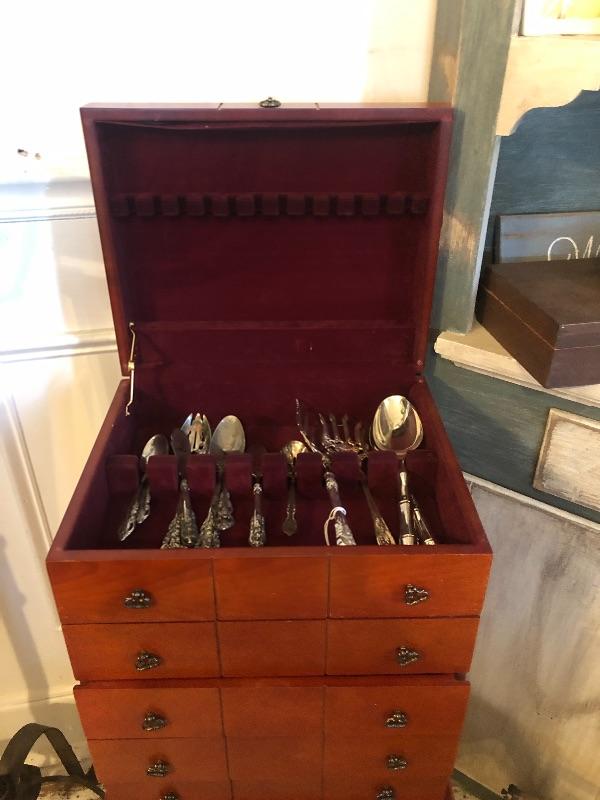 No silverware shown in pictures is available with this holder it has four additional drawers besides the top that opens