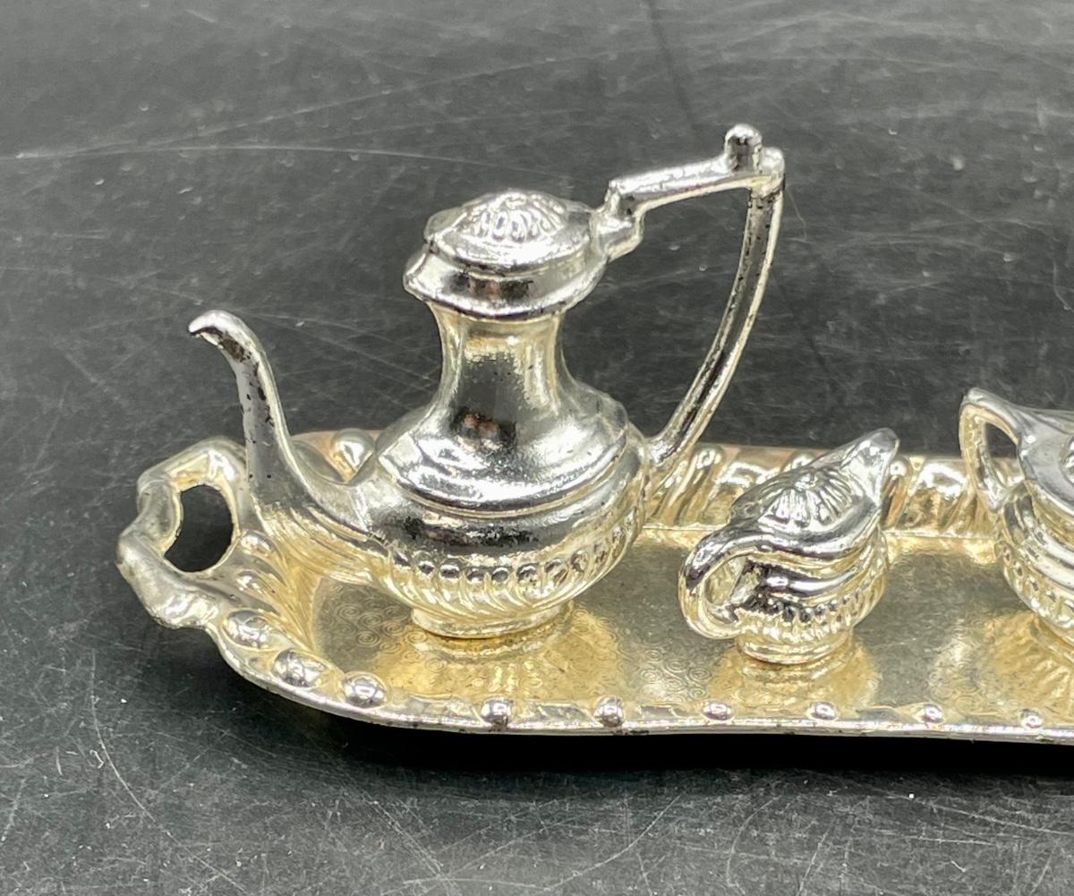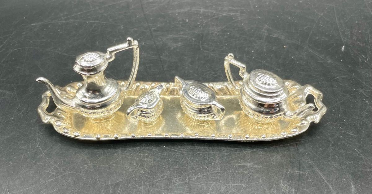 Miniature Serving Tray and Tea Set, large dollhouse size heavy pieces