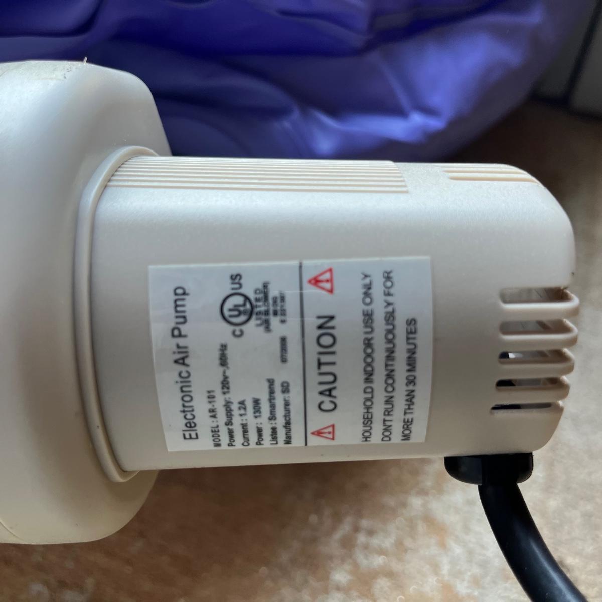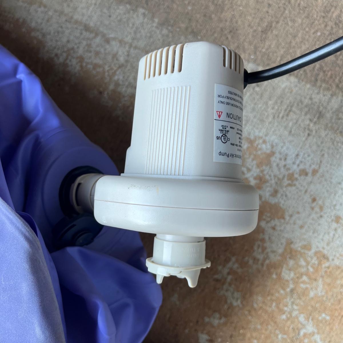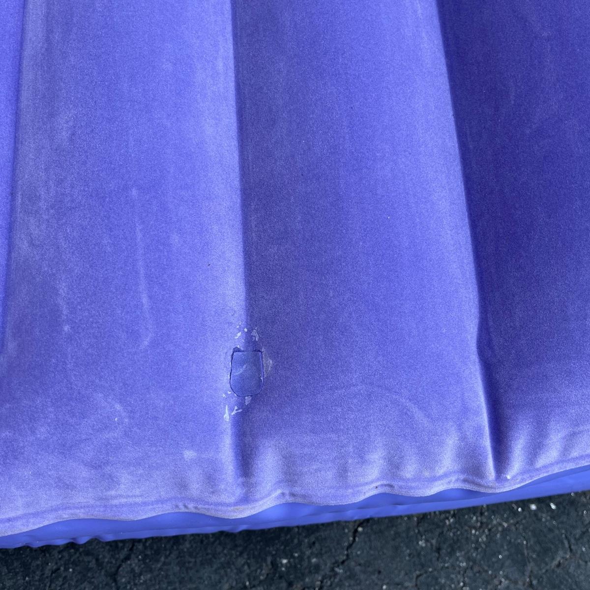 Lot includes a Simmons full size air mattress with pump and storage bag. Mattress was patched at some time but held air for the fifteen minutes we had it inflated.