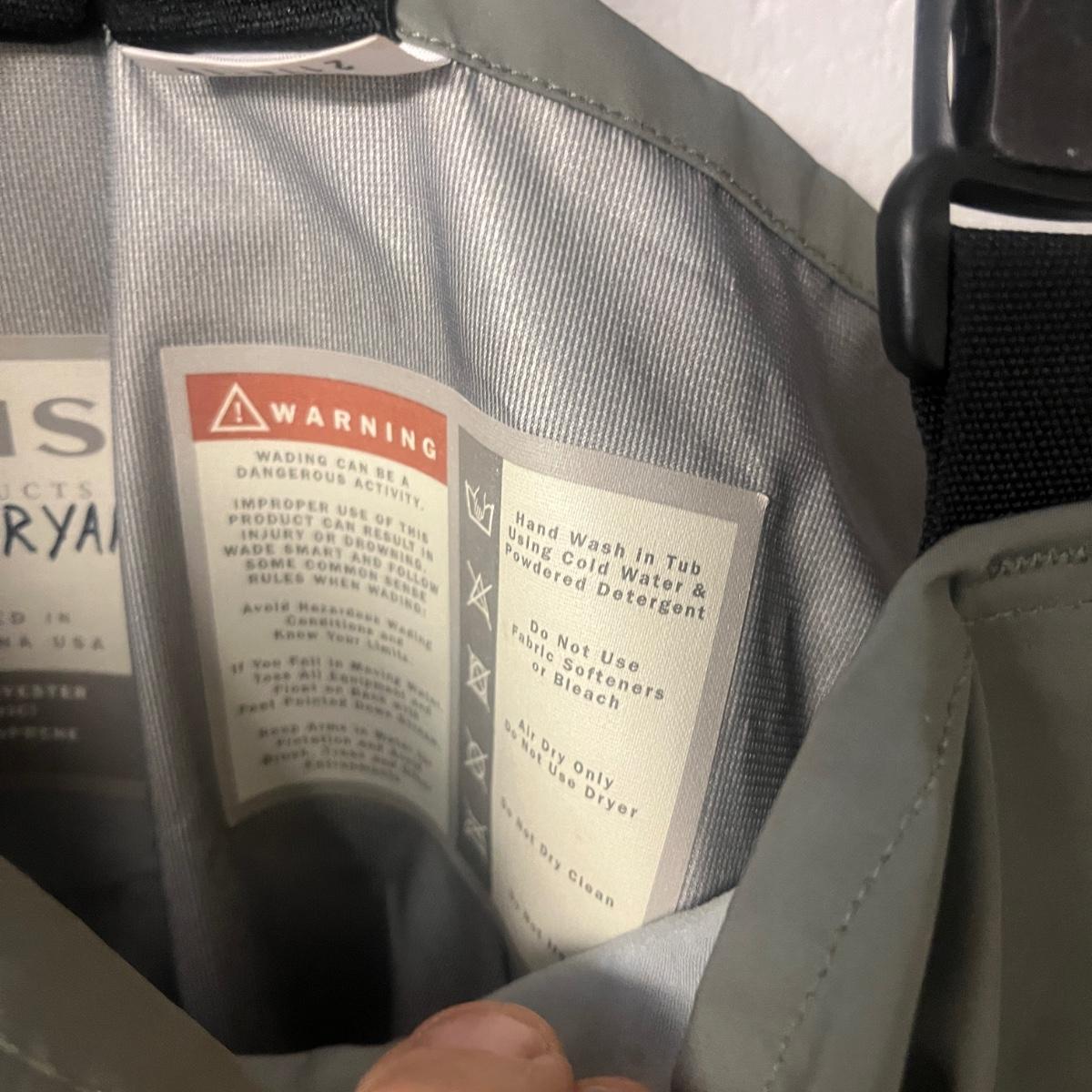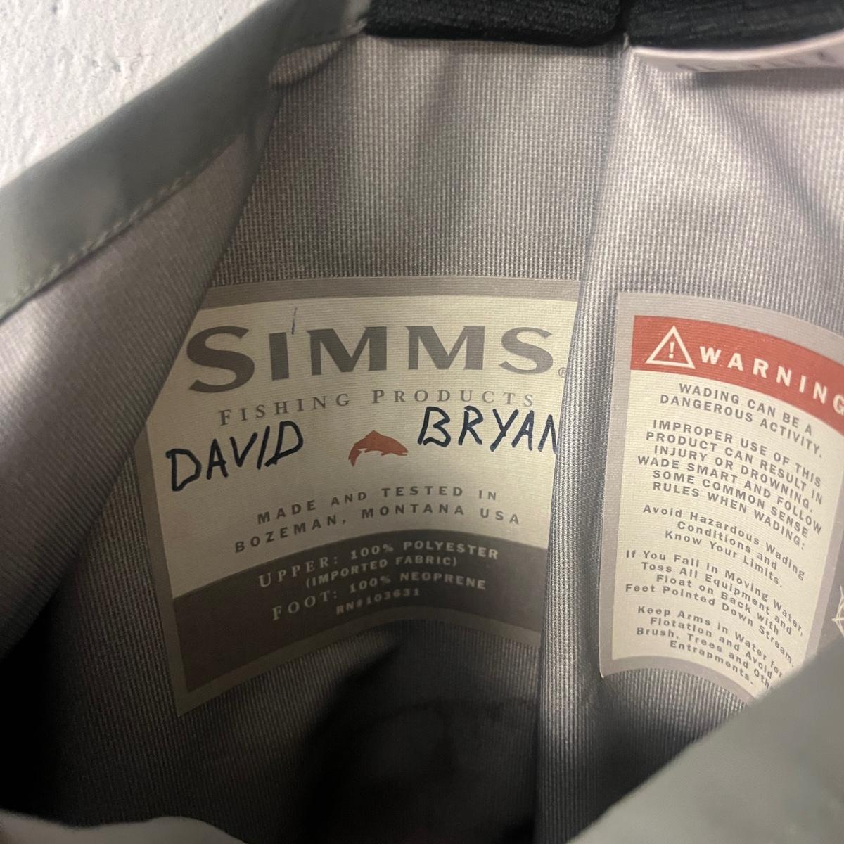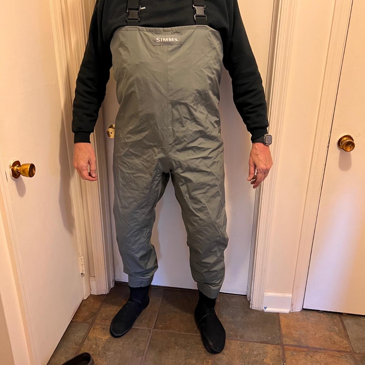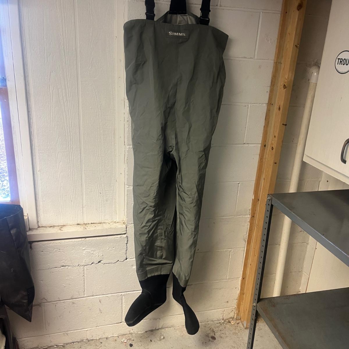 Lot includes a pair of Simms waders with neoprene feet in a men’s size king.