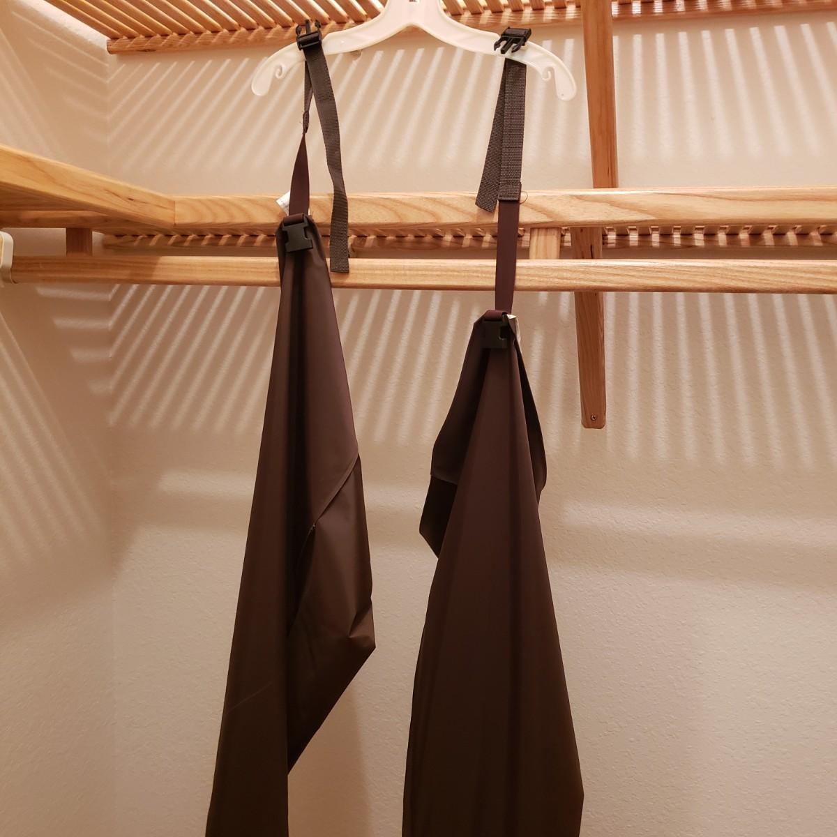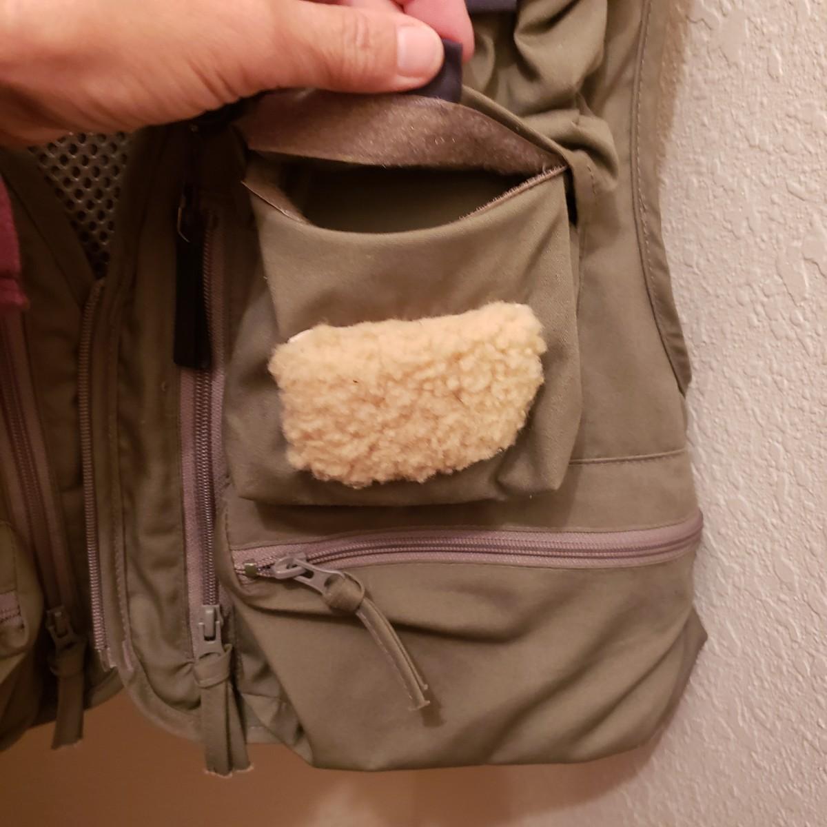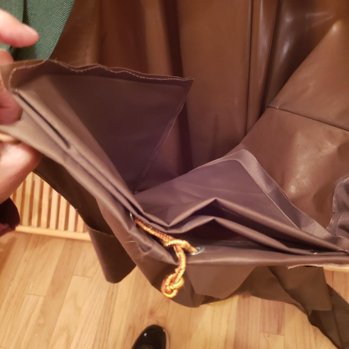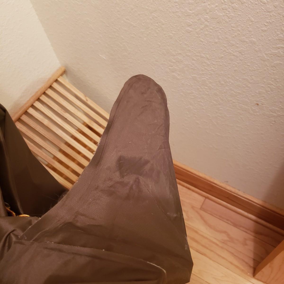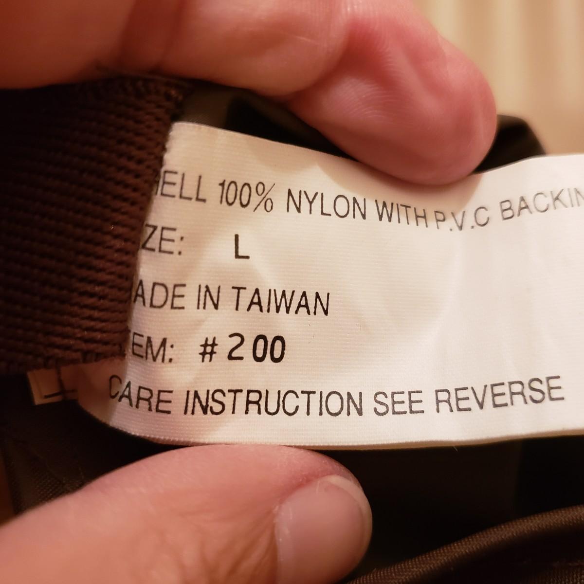 A Simms XL fishing vest with many pockets and accessories, see pictures. There is a Columbia men's medium fly vest also with many pockets. The Red Ball waders with suspenders measure 24"x 54"H. The waist appears to be adjustable. It comes with an extra green strap. The green Columbia size men's medium shell is made out of nylon. The single legged waders do not have a brand name tag, but state a size Large.