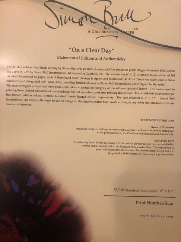 Simon Bull Signed and Numbered Etching