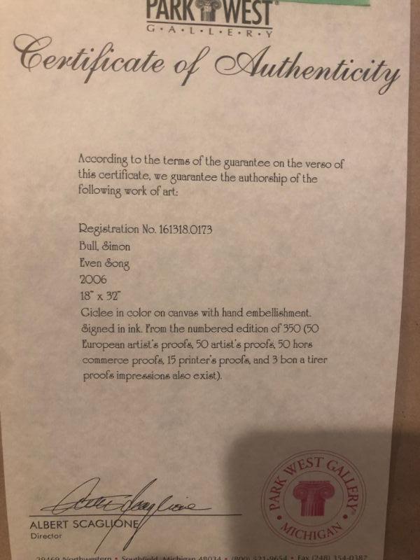 Simon Bull Signed Limited Edition Giclee on Canvas