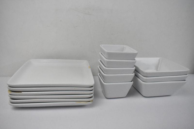 Simple Additions Dishware: 6 Large Plates, 3 Bowls, 5 Mini Bowls - 5 Chipped