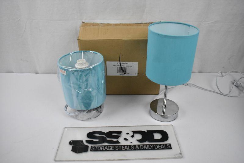 Simple Designs Chrome Mini Basic Table Lamp with Fabric Shade 2 Pack Set - New