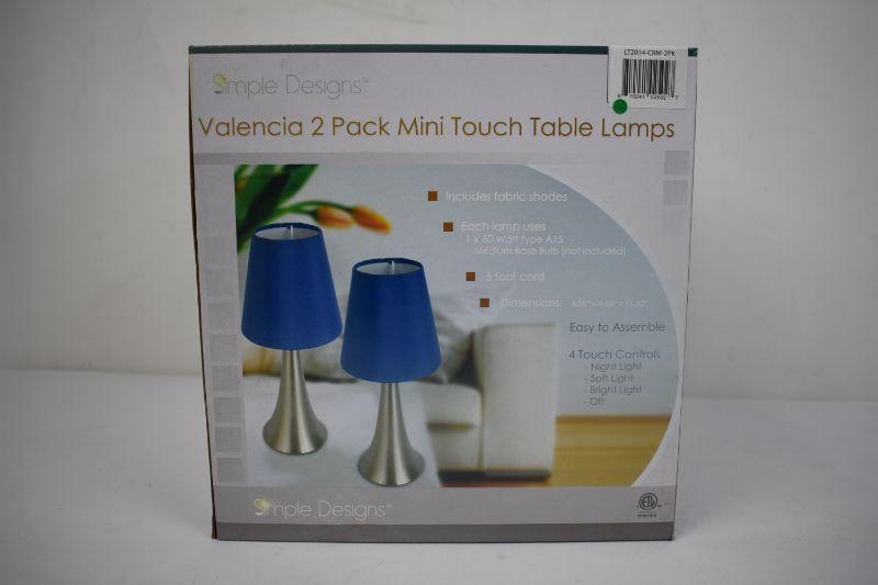 Simple Designs Valencia 2 Pack Mini Touch Table Lamps, Cream/Rose Gold - New