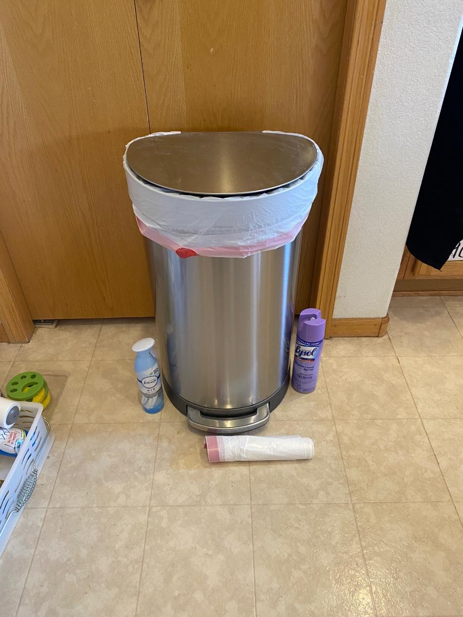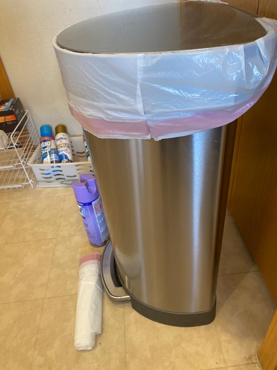 TRASH CAN WILL NEED A GOOD CLEANING https://www.simplehuman.com/products/semi-round-liner-rim-step-can-60l