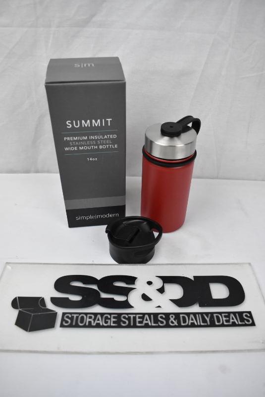 Simple Modern 14 Ounce Summit Kids Water Bottle - Travel Mug Stainless Steel Tumbler Flask +2 Lids - Wide Mouth Double Walled Red, $15 Retail - New