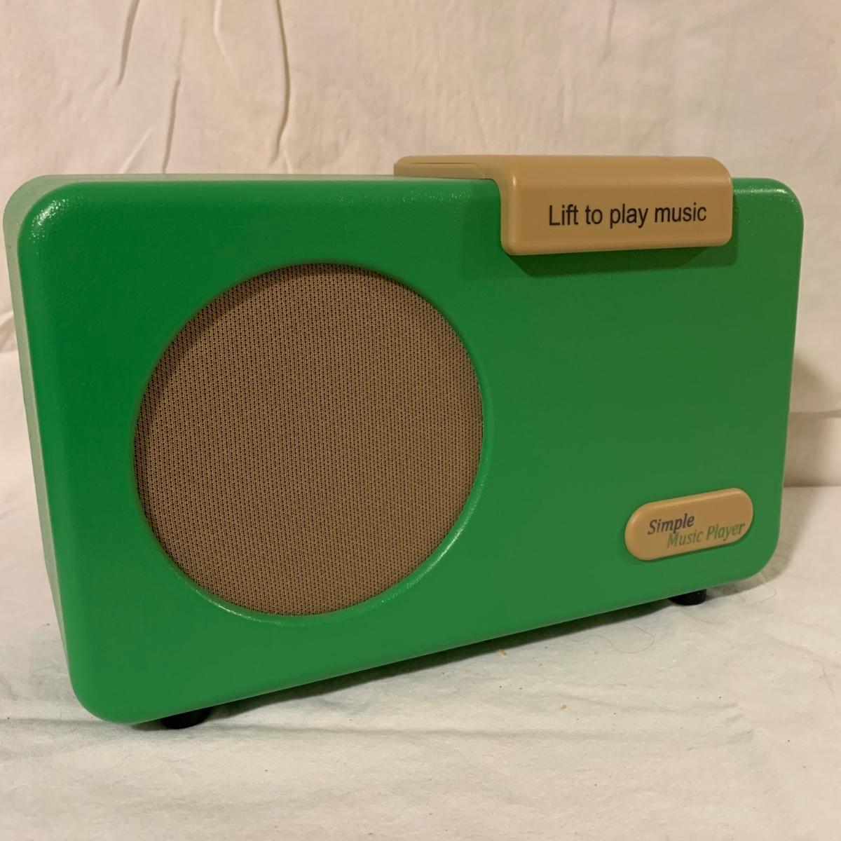 Simple Music player for those with dementia and Alzheimer’s. Unit powers on easily and songs are changed with the touch of a button. Please see photos for more details. Unit measures 12” x 4.5” x 7.5”H.