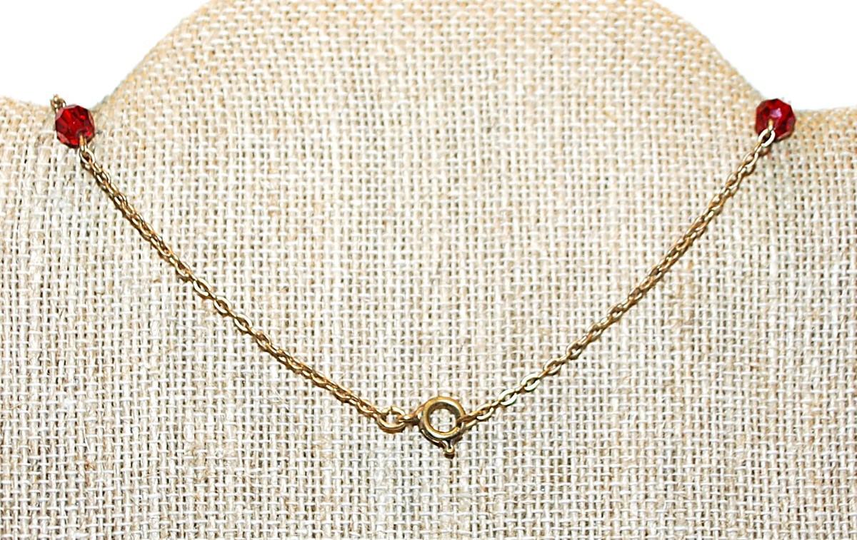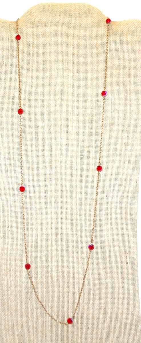 Simple Red Acrylic Stones NECKLACE with Gold Tone Chain & Lobster Clasp 30" L