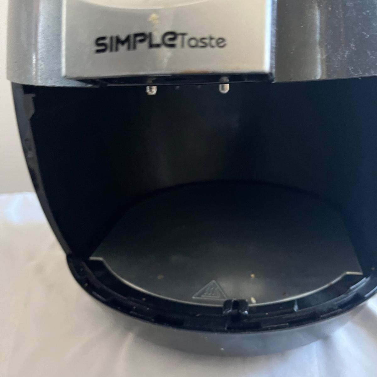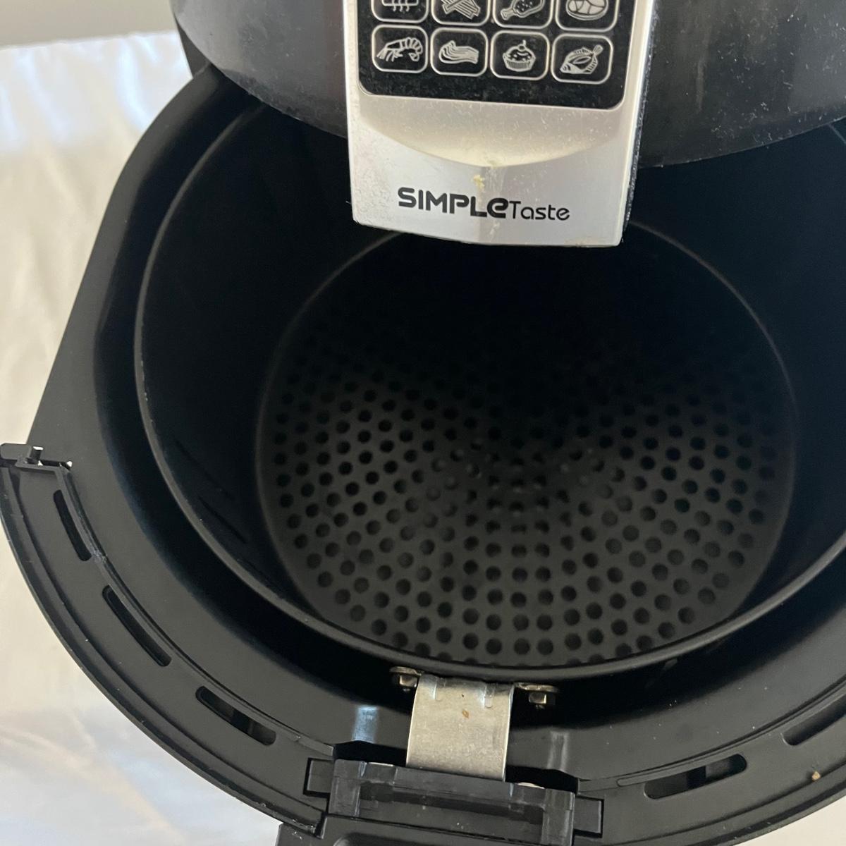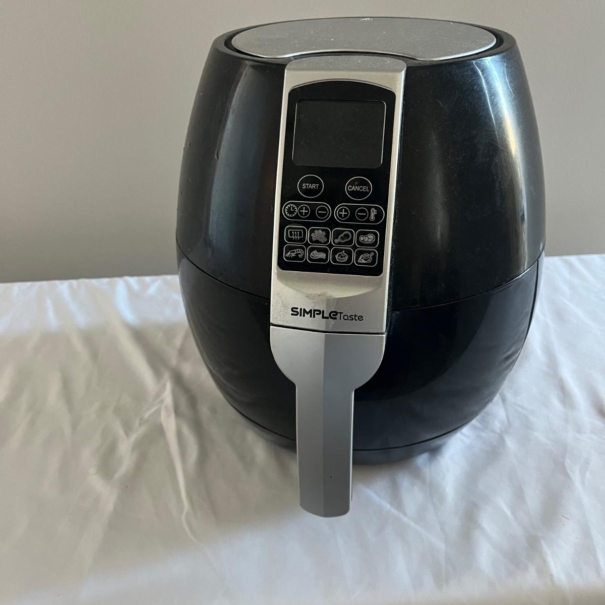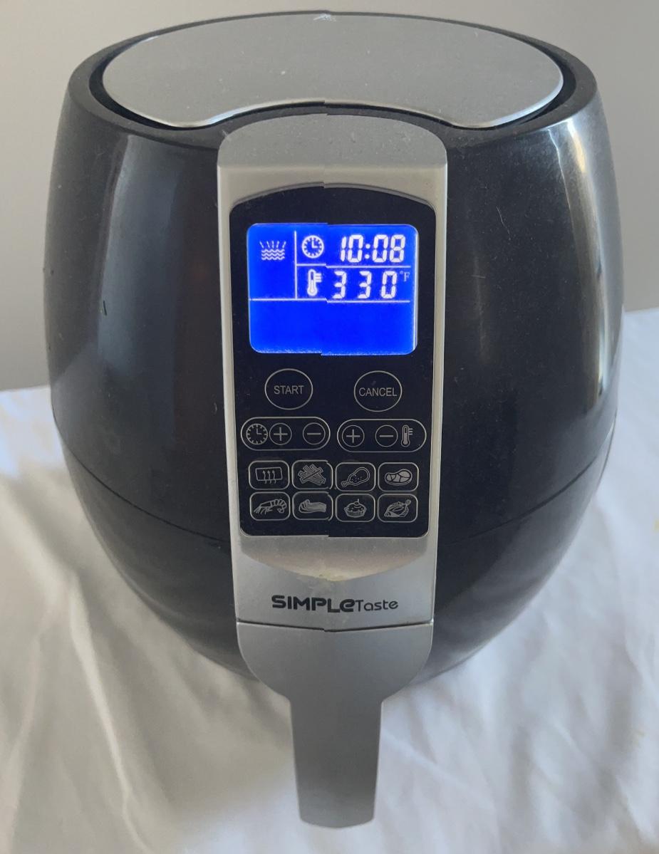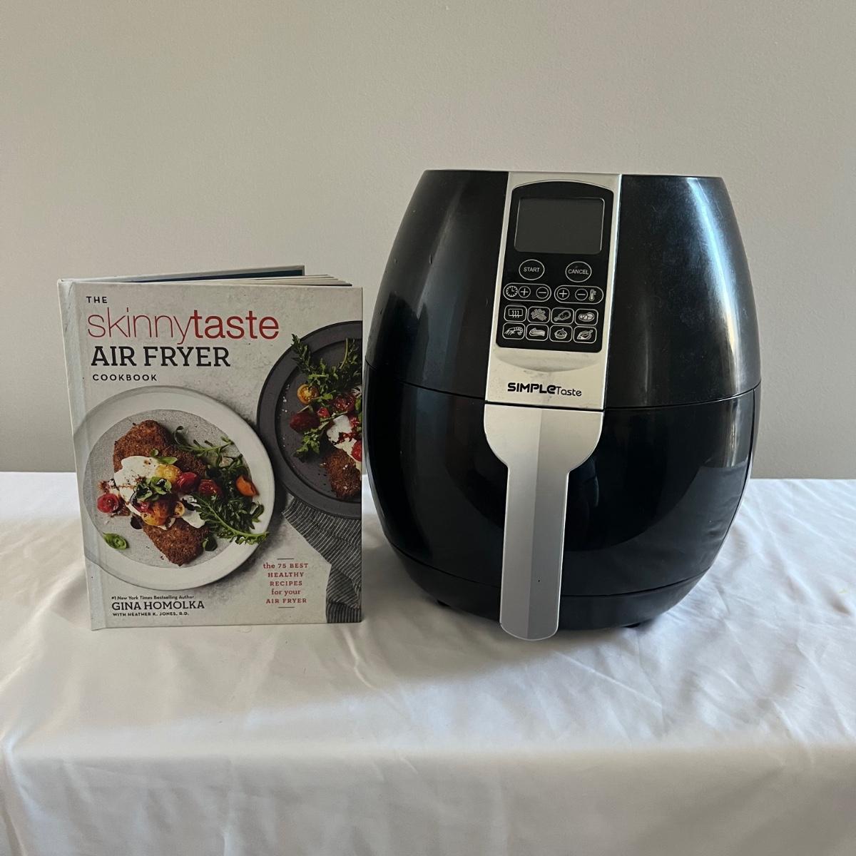 Lot includes a Simple Taste air fryer and a Skinny Taste air fryer cookbook. Air fryer powered on when tested. Fryer measures 10.5”D x 13” tall.