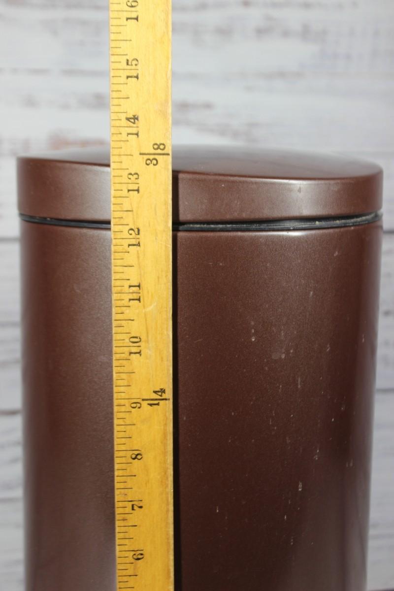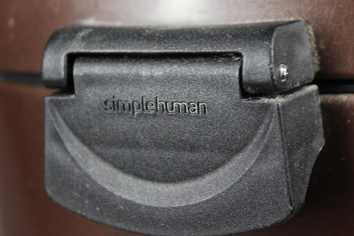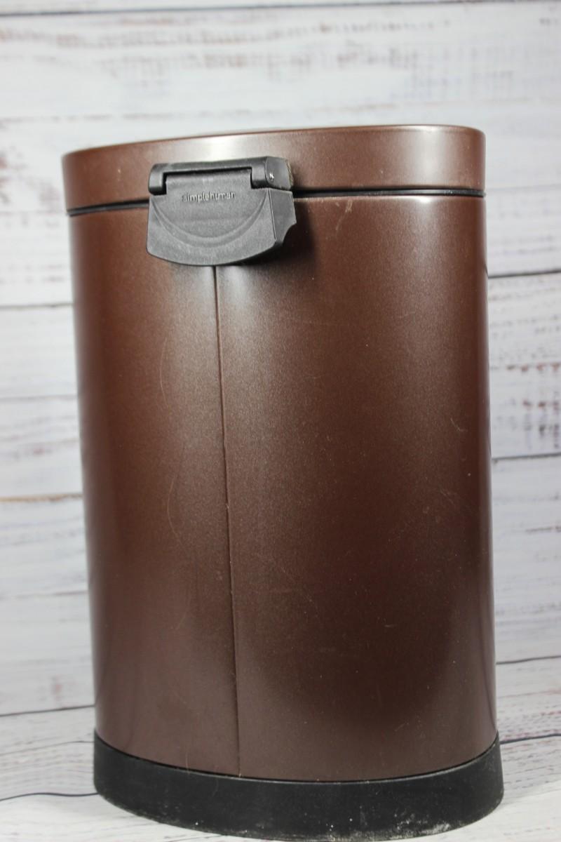 Simplehuman Small Pedal Trash Can, there are no significant dents to the trash can and is in good useable condition. The pedal and lid works perfectly, check pictures for more details and for sizing.