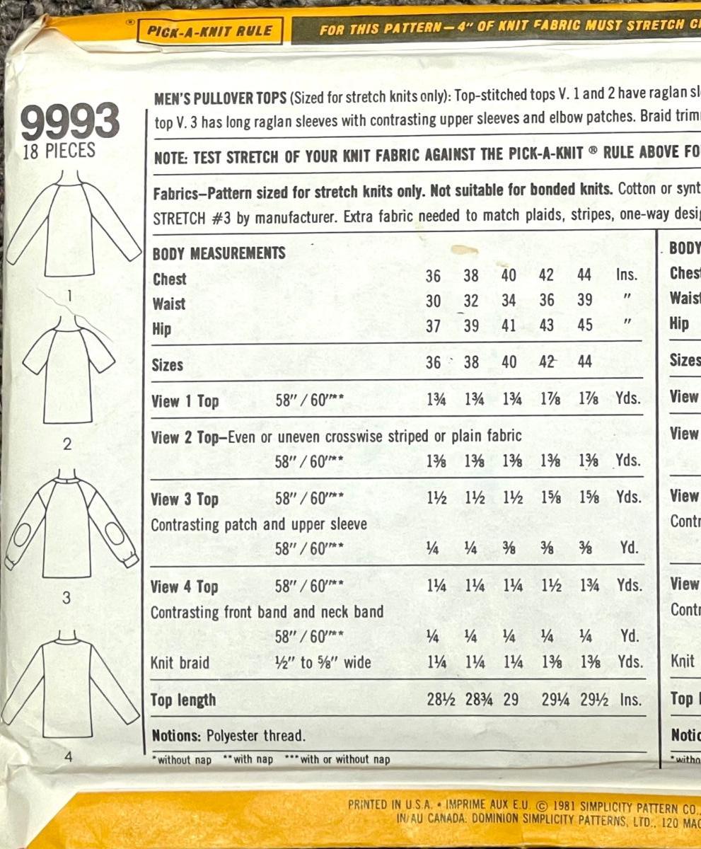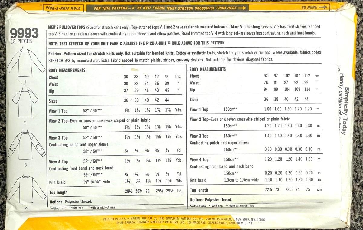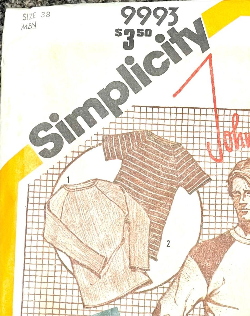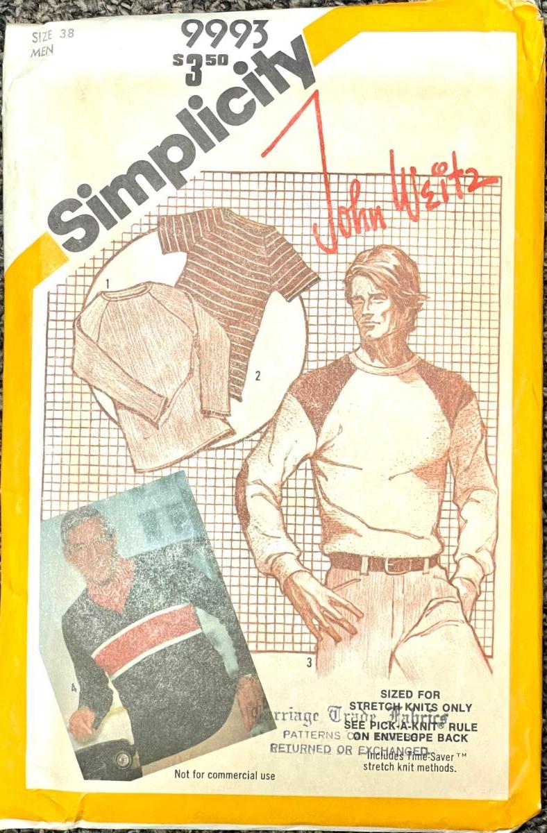 Simplicity John Weitz for stretch knits only No. 9993 men size 38 1981. All pieces verified.