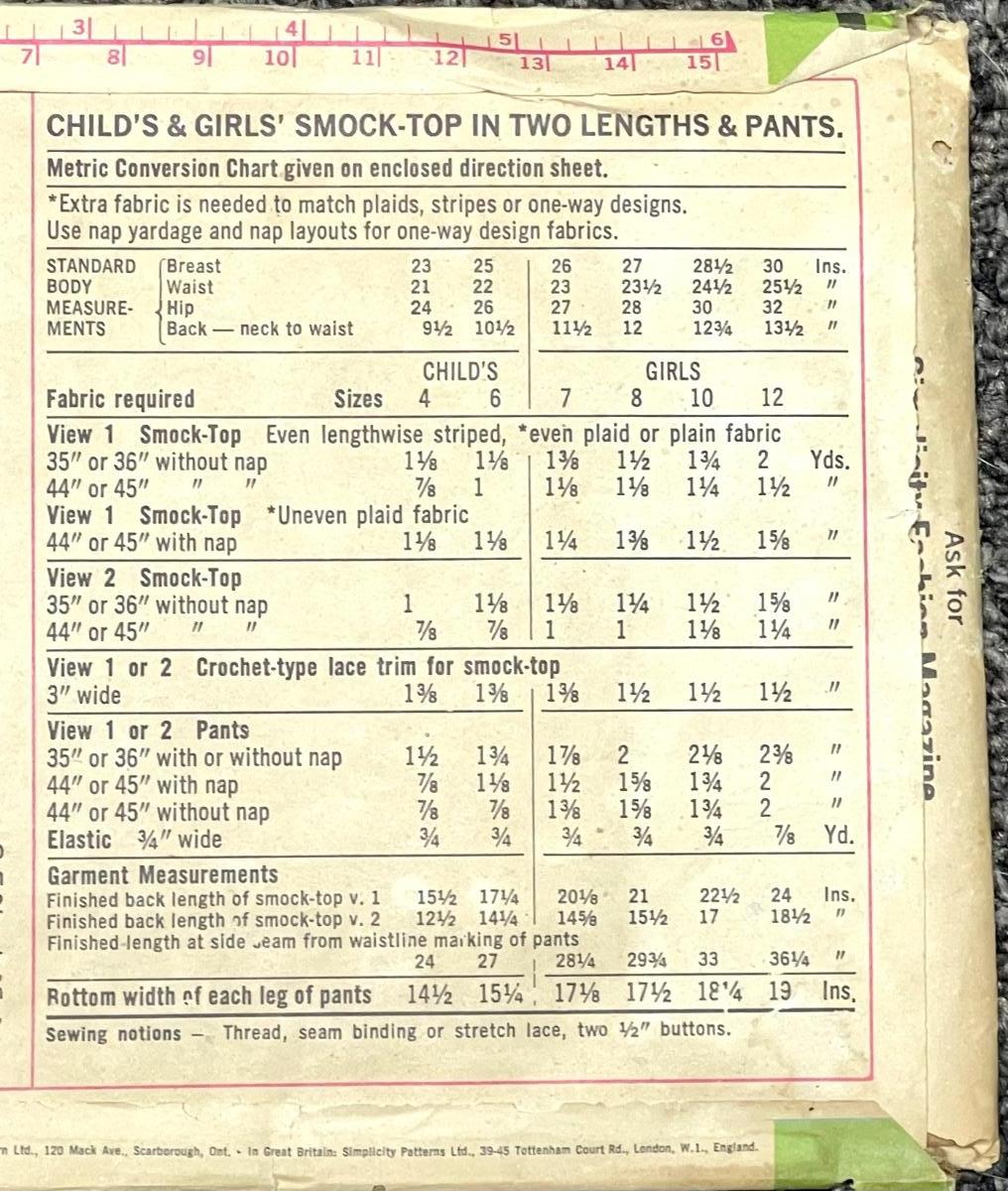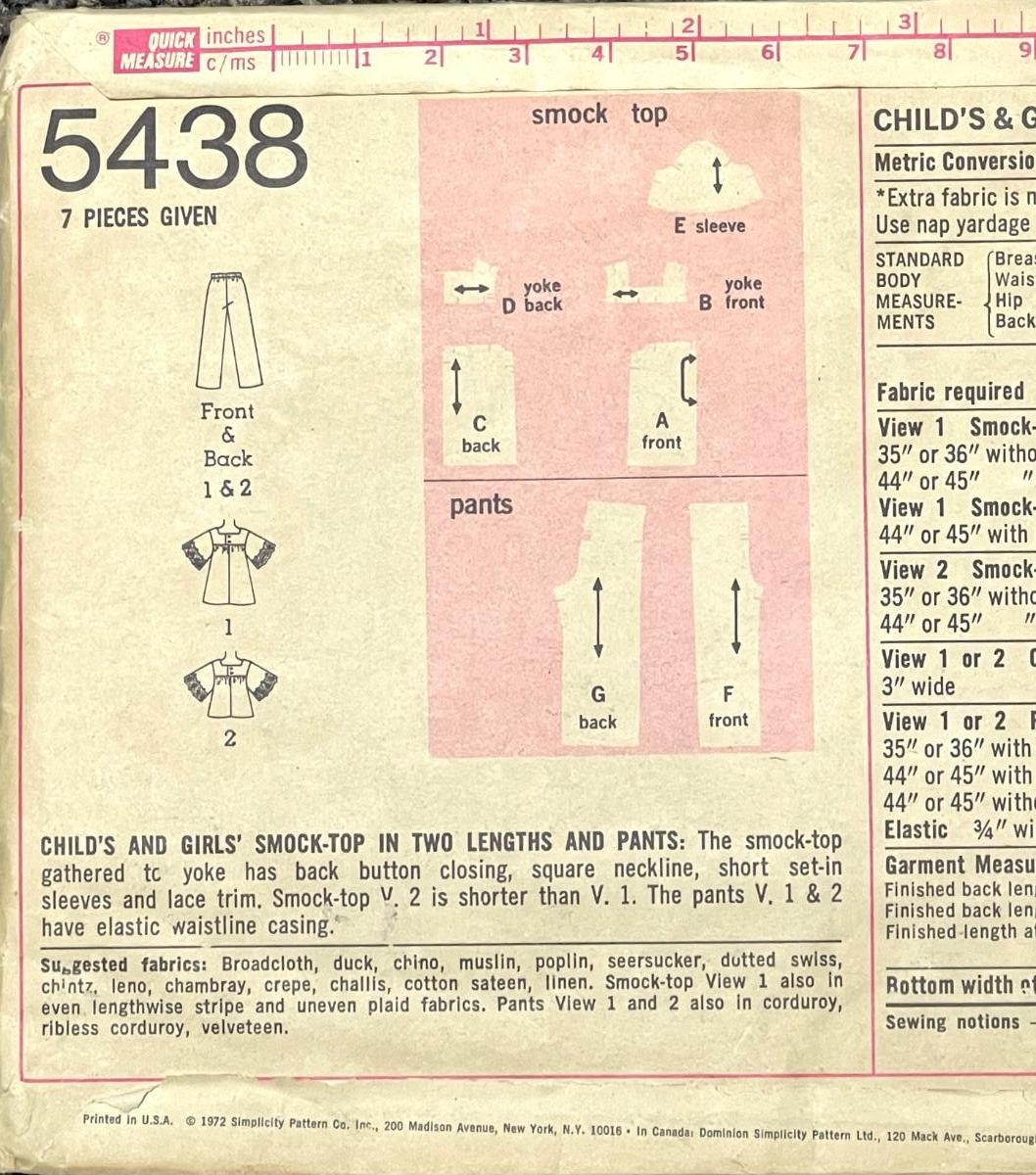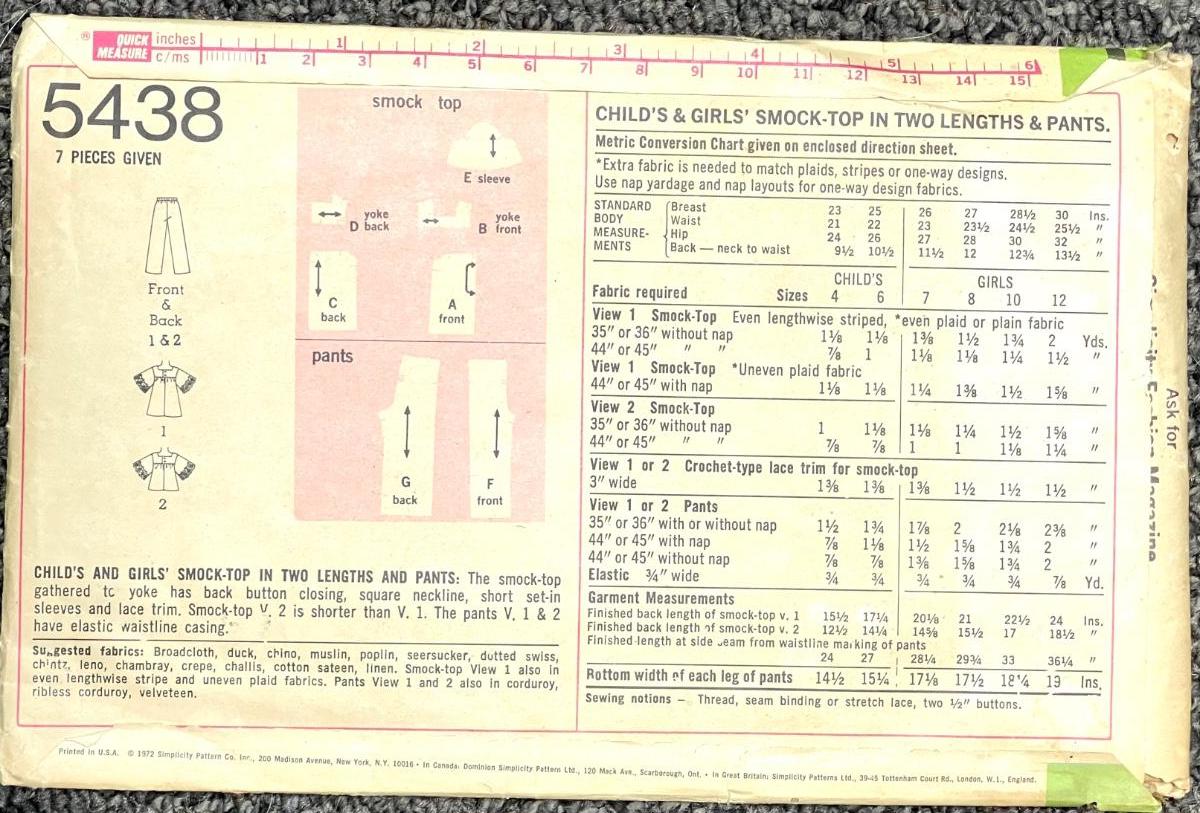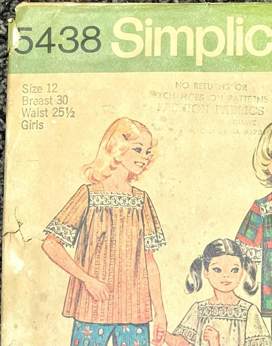 Simplicity No. 5438 girls size 12 breast 30 waist 25 1/2 1972. All pieces verified.
