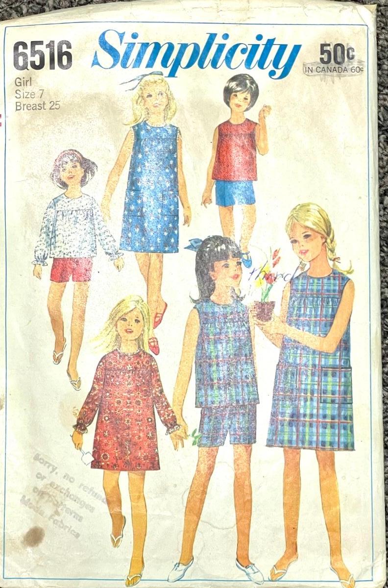 Simplicity No. 6516 girl size 7 breast 25 1966. All pieces verified.