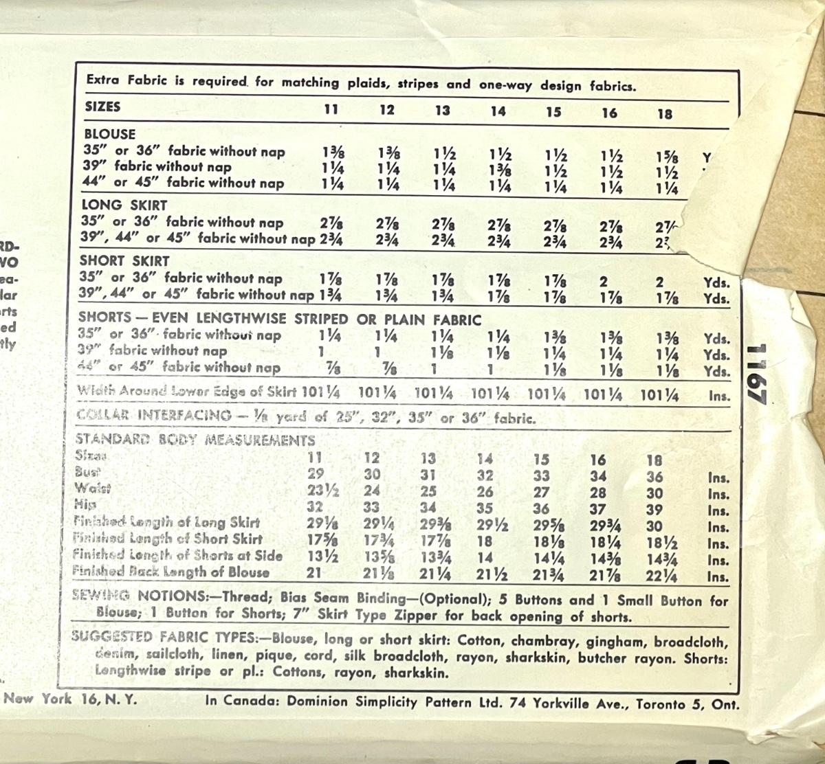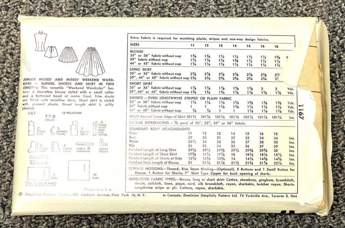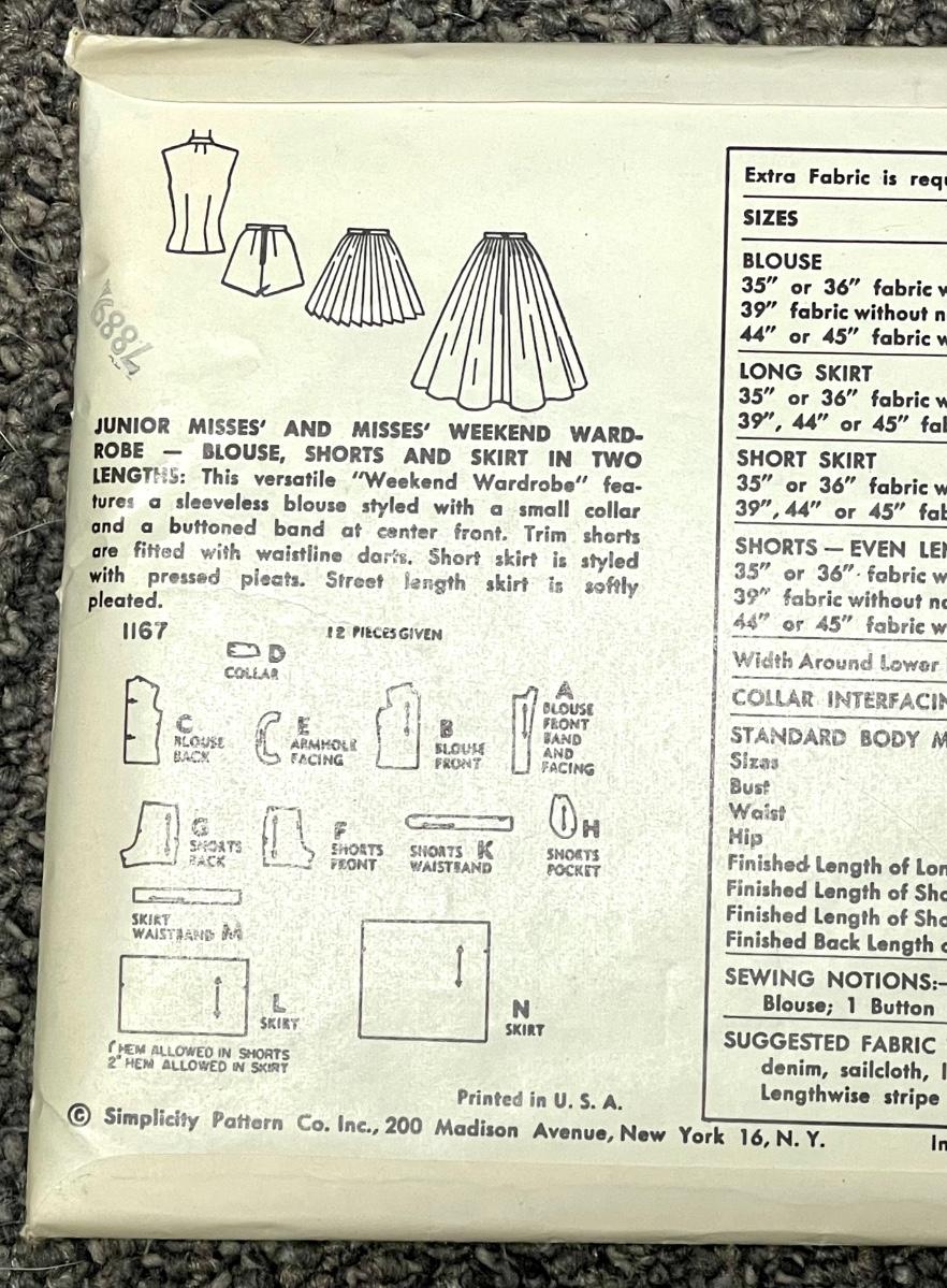 Simplicity Printed Pattern No. 1167 size 12 bust 30