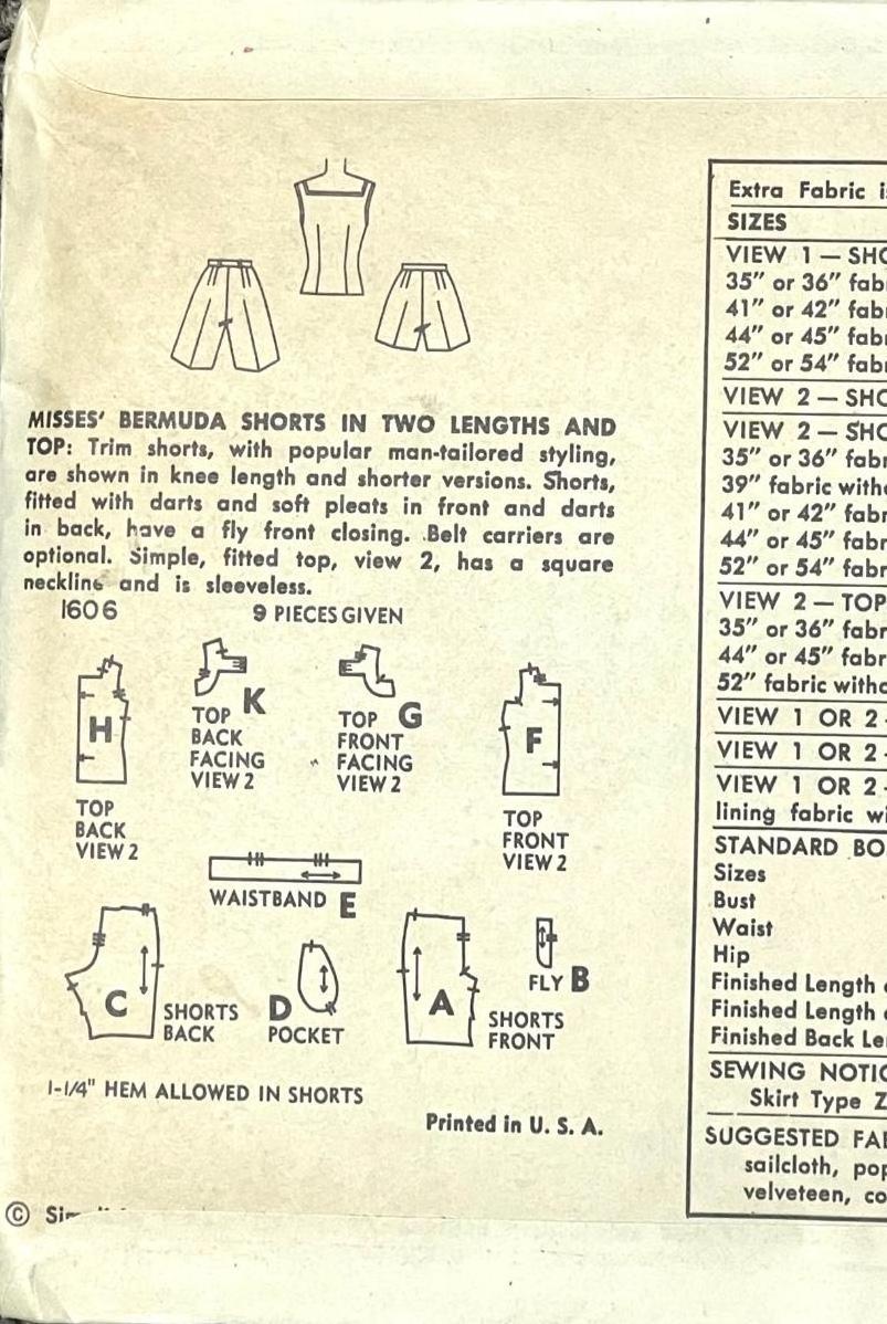 Simplicity Printed Pattern No. 1606 size 12 bust 30