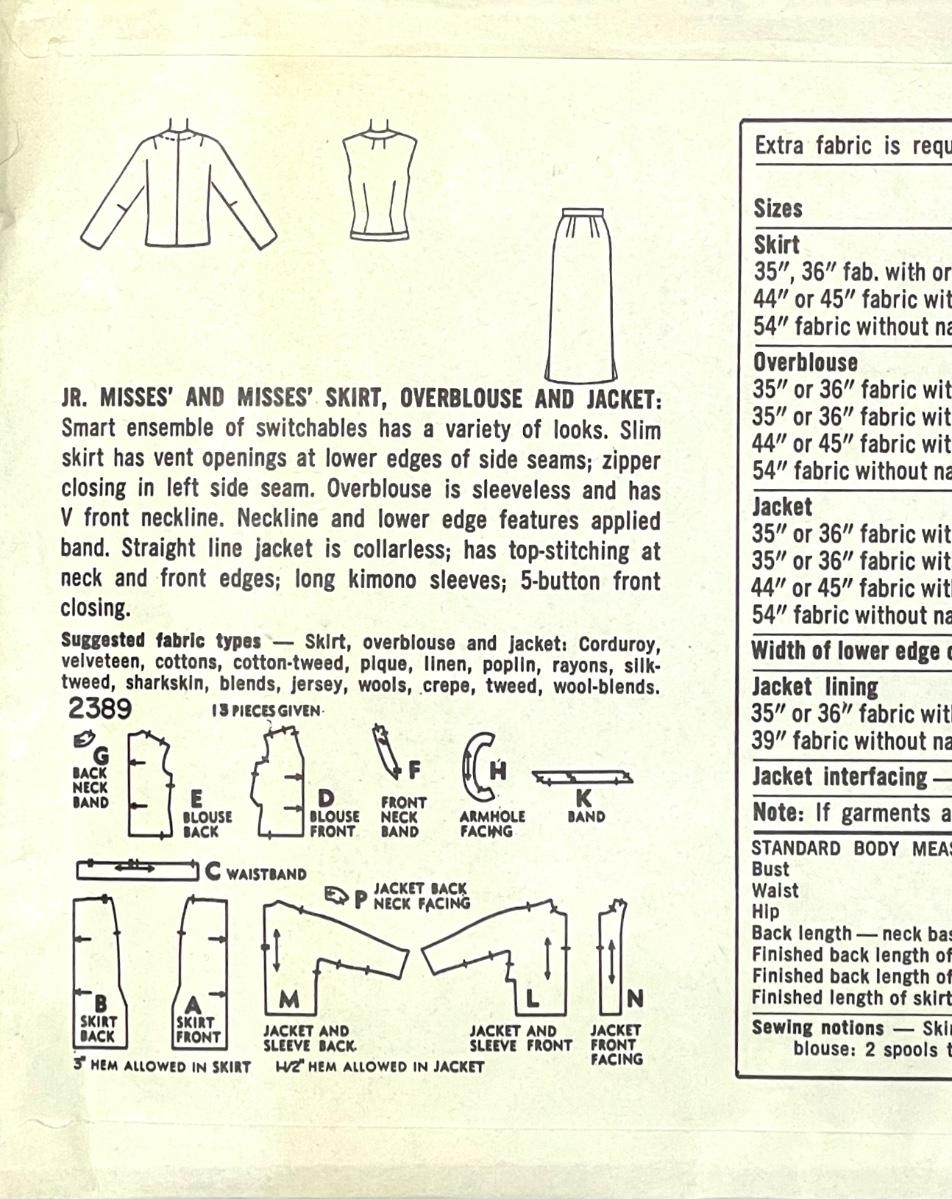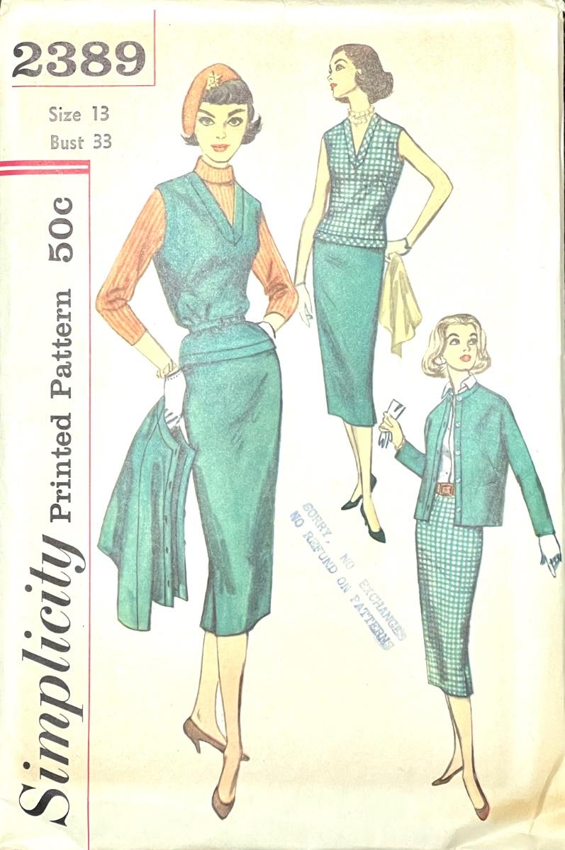 Simplicity Printed Pattern No. 2389 size 13 bust 33 vintage women's suit sewing pattern