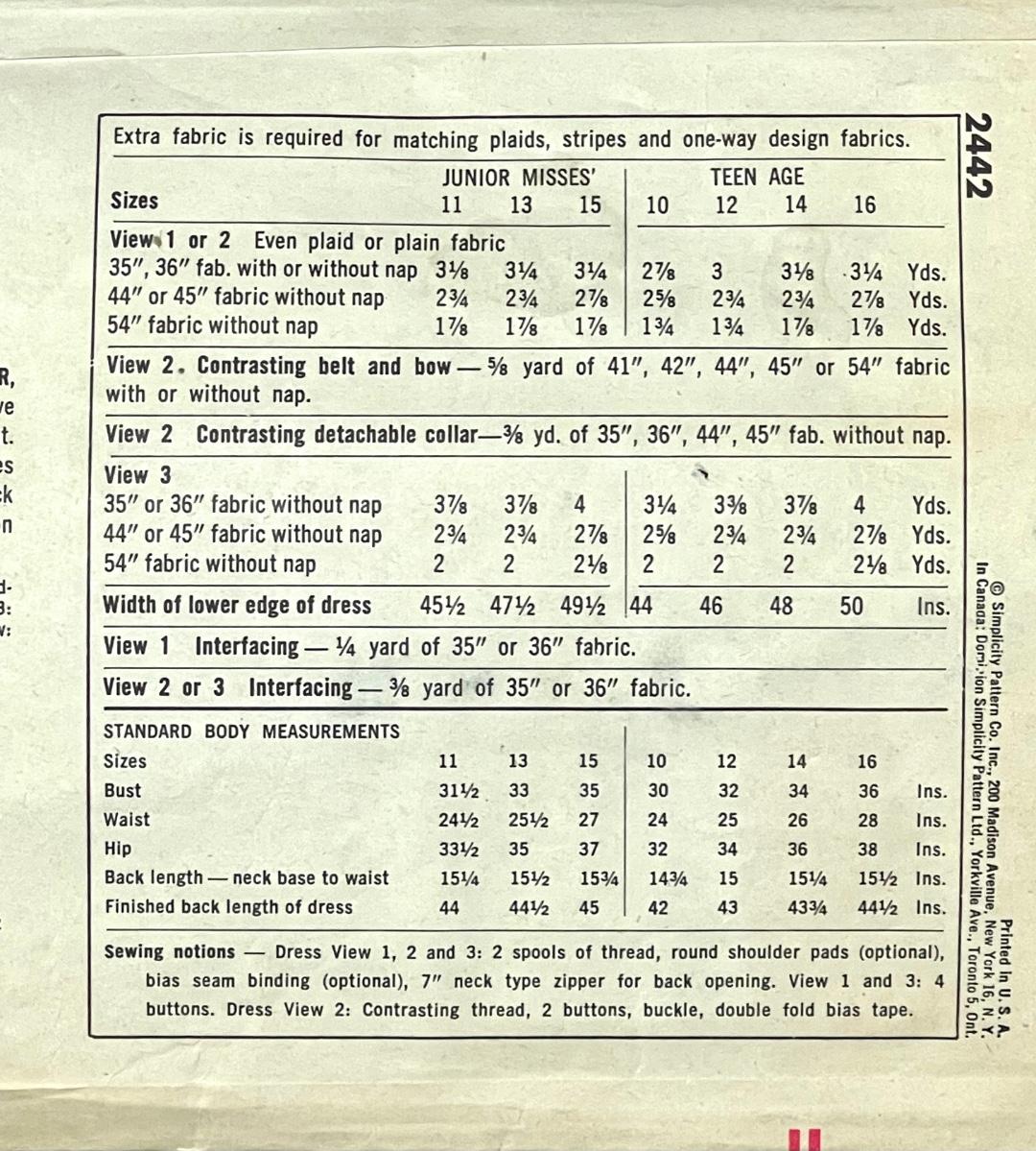 Simplicity Unit Construction No. 2442 size 13 bust 33