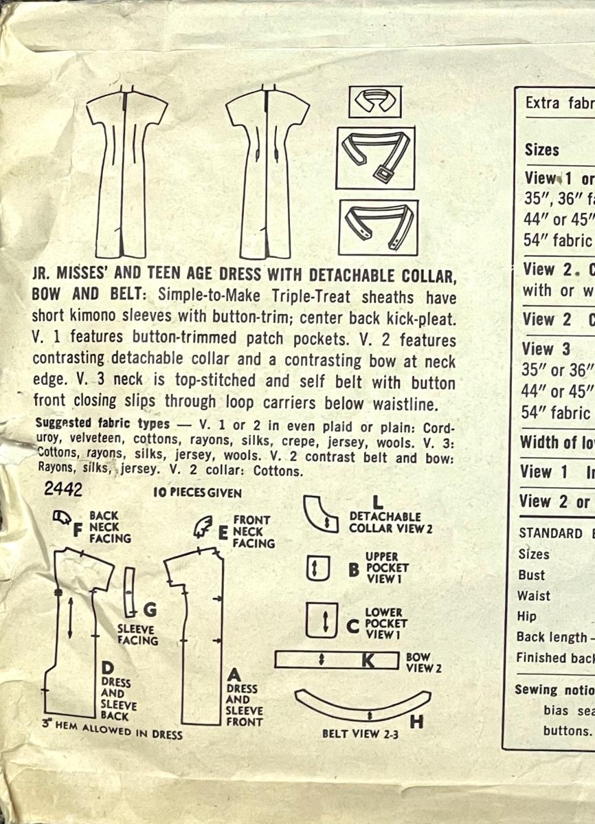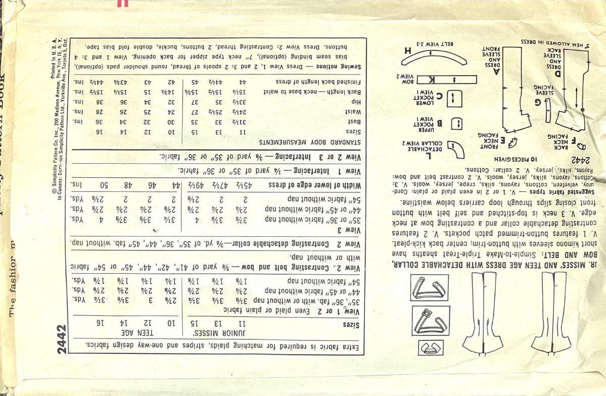Simplicity Unit Construction No. 2442 size 13 bust 33
