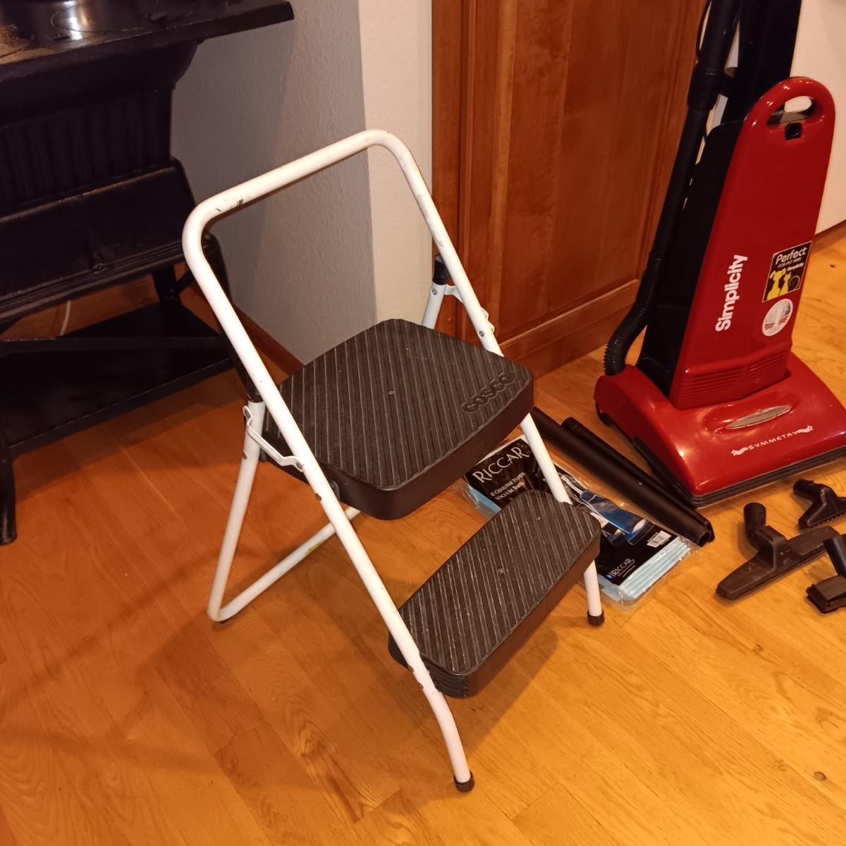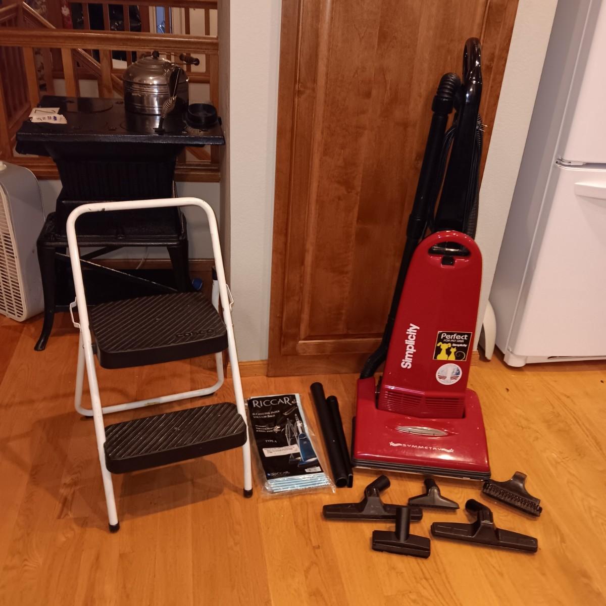 SIMPLICITY VACUUM WITH ATTACHMENTS AND FOLDING STEP STOOL