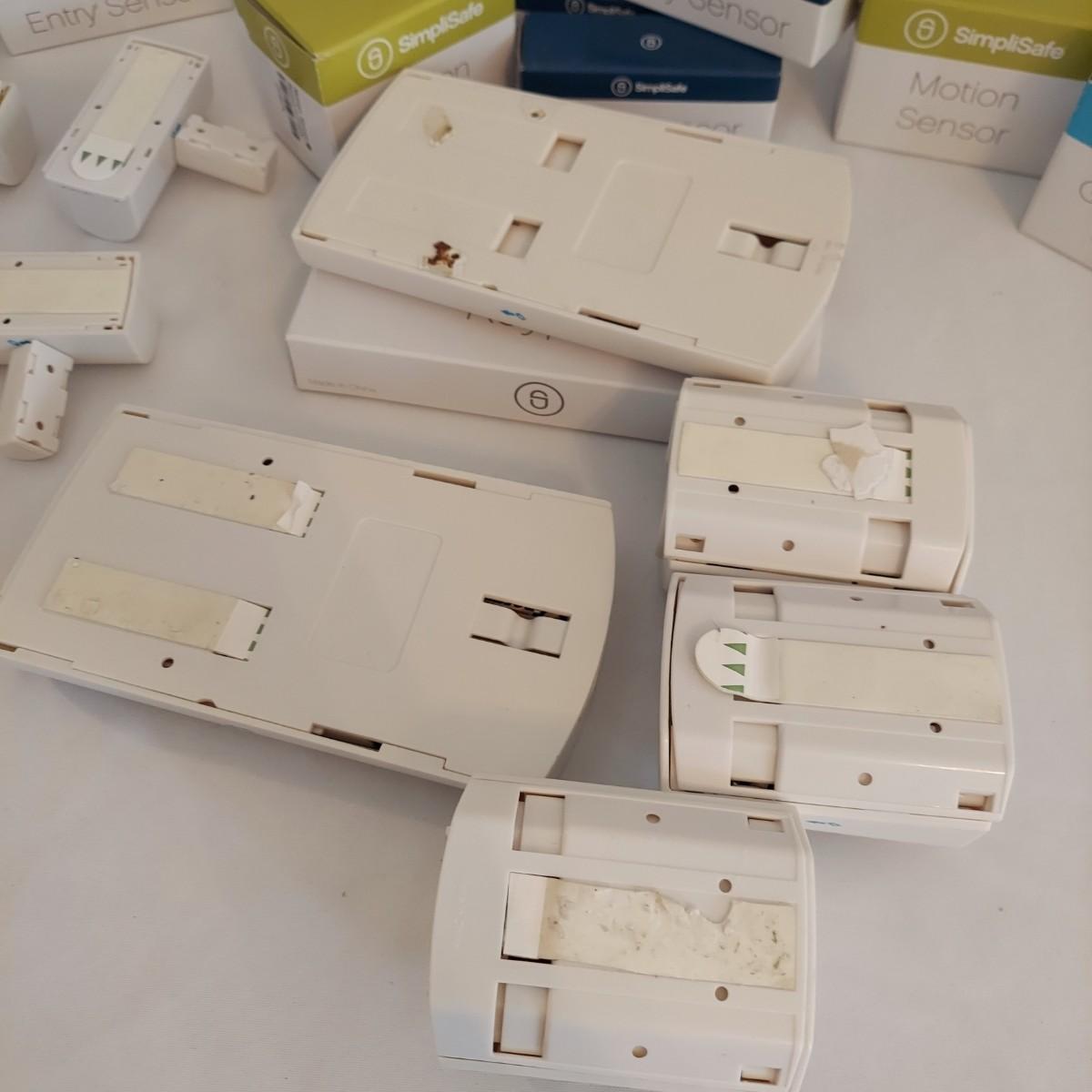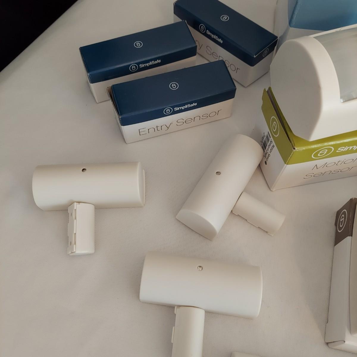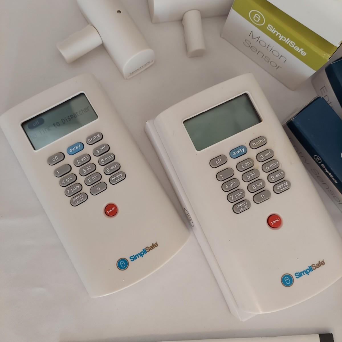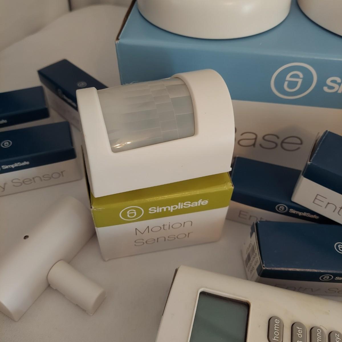 SimpliSafe security system includes two base units, three motion sensors, one glass break sensor, two control panels and five entry sensors with the owners manual. These items were installed and in use. Please see photos for details. Some items in tan boxes can be seen in photos. These items are for sale in another lot with a 3rd generation system. Shipping available.