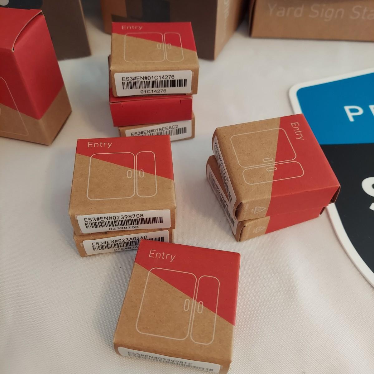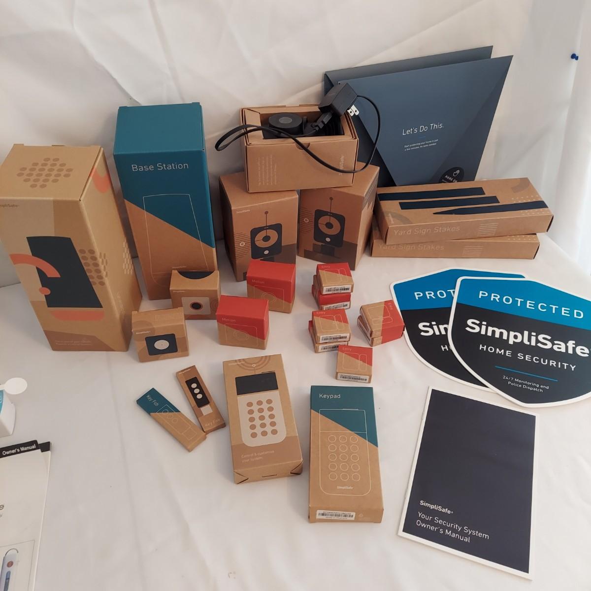 This appears to be mostly a 3rd generation version of the system. Some pieces could be 2nd generation. This Lot includes two base stations, three cameras, three motion sensors, one glass break sensor, two keypad panels, two key fobs, seven entry sensors and two yard signs with stakes. The base stations are approximately 10"H. Most items appear to be unused, sealed in plastic, in their original boxes. Also includes owners manual. Please see photos for details. Shipping available