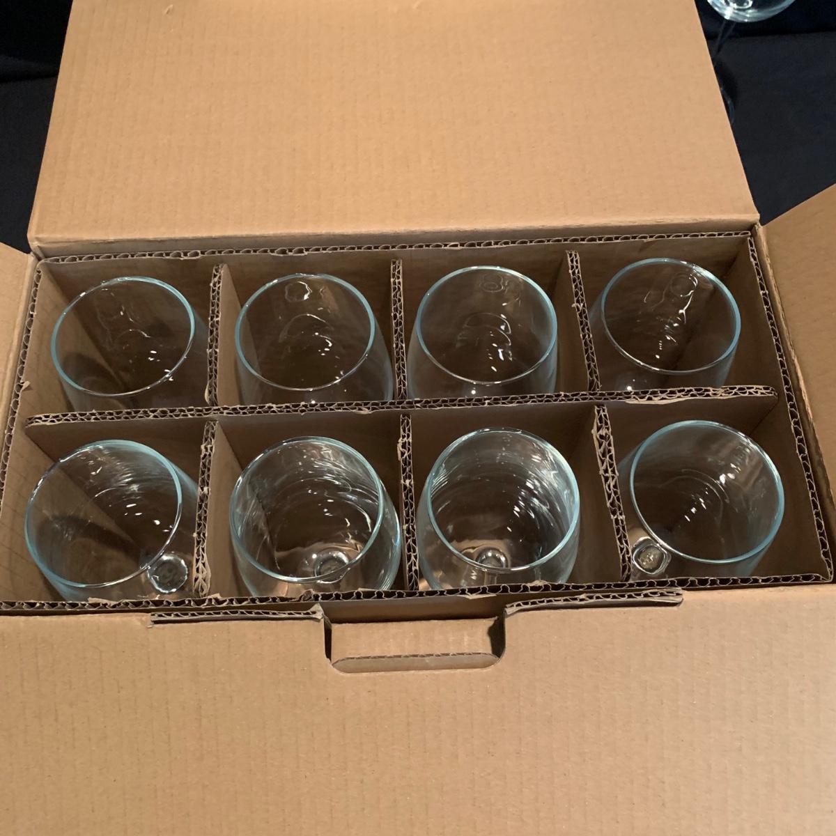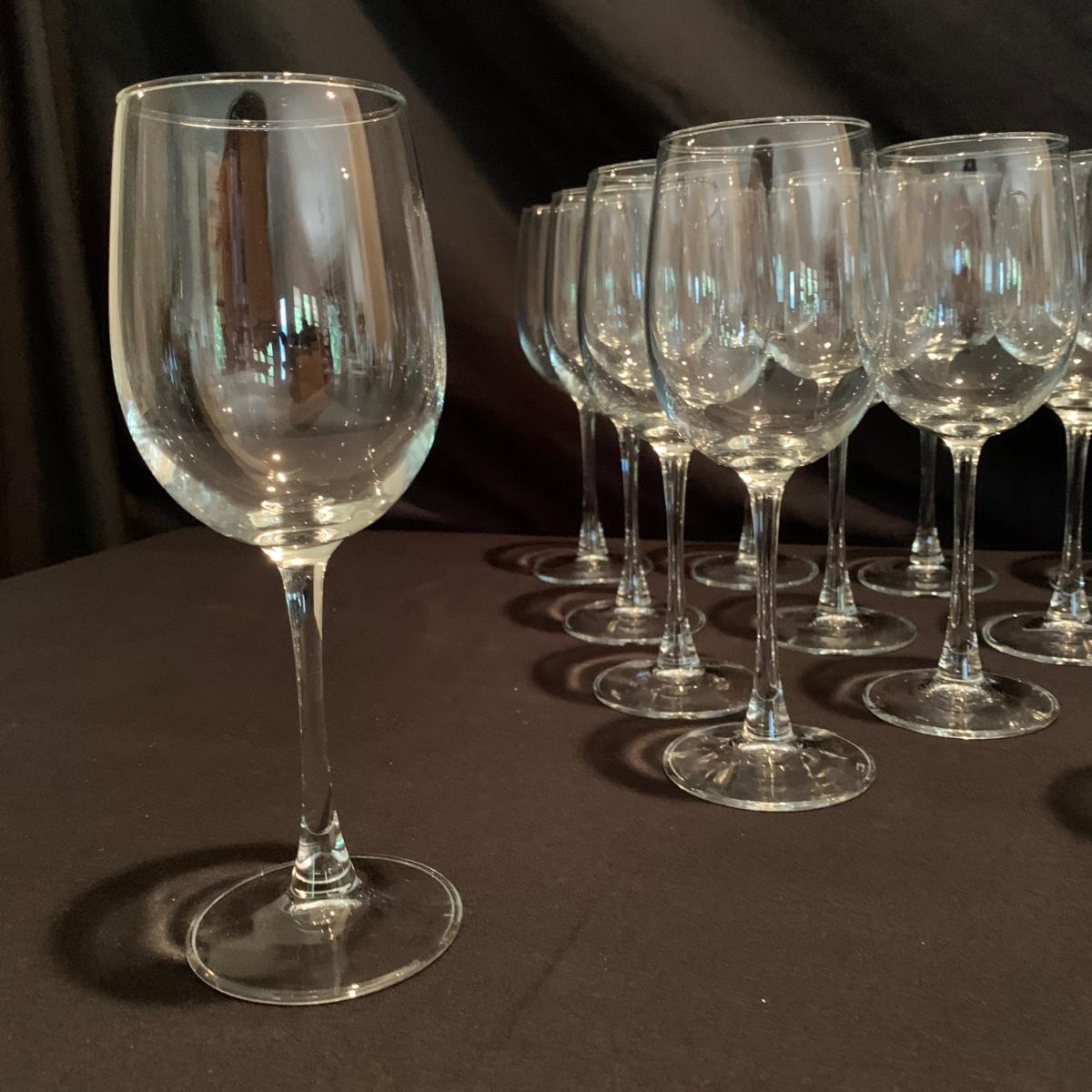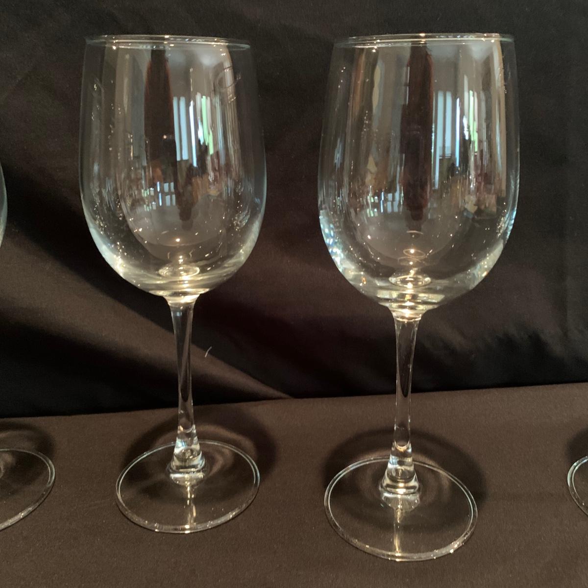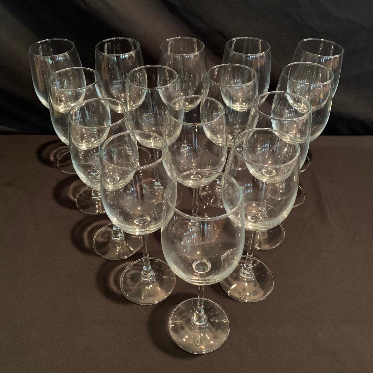 Lot includes 15 Simply Essential wine glasses. Strong glasses, perfect for everyday use. Each glass measures, 2.5”D x 8.5”H. Shipping available.