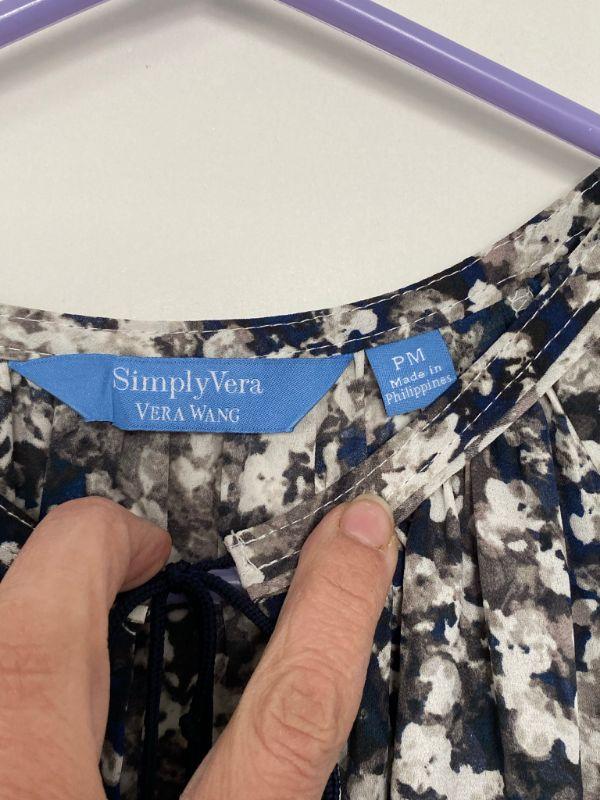 Simply Vera Blue Gray Floral Peasant Blouse Vera Wang Size PM YD#019-0050