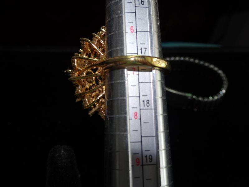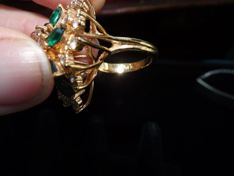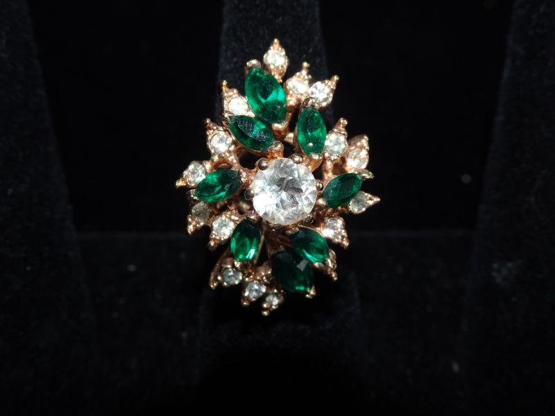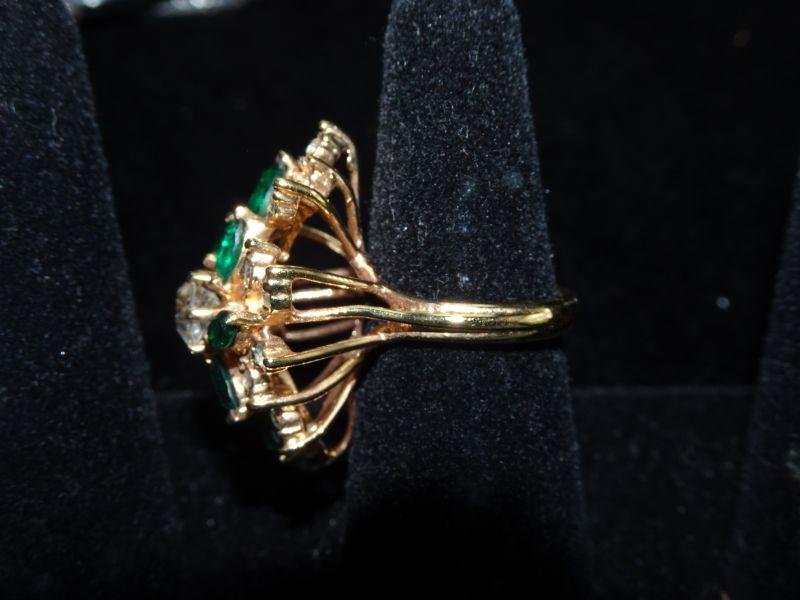 Simulated Emerald & Diamond Cluster Ring, Gold Filled