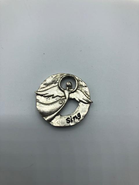 "Sing Out Loud" Angel Medallion Coin. Sing is stamped on the front, Out Loud on the back. 1" size.