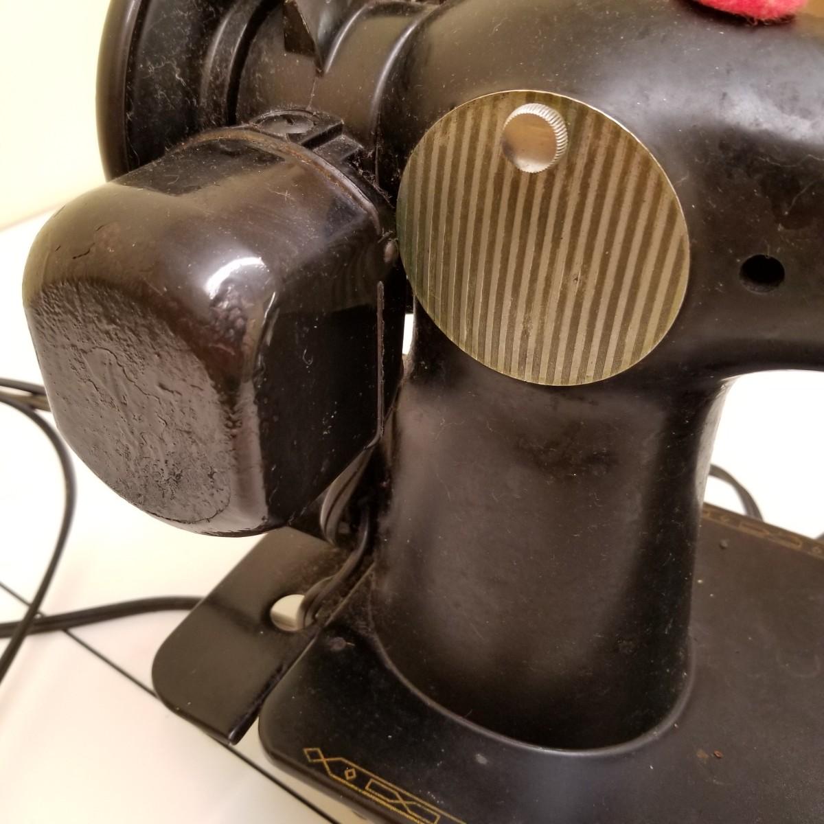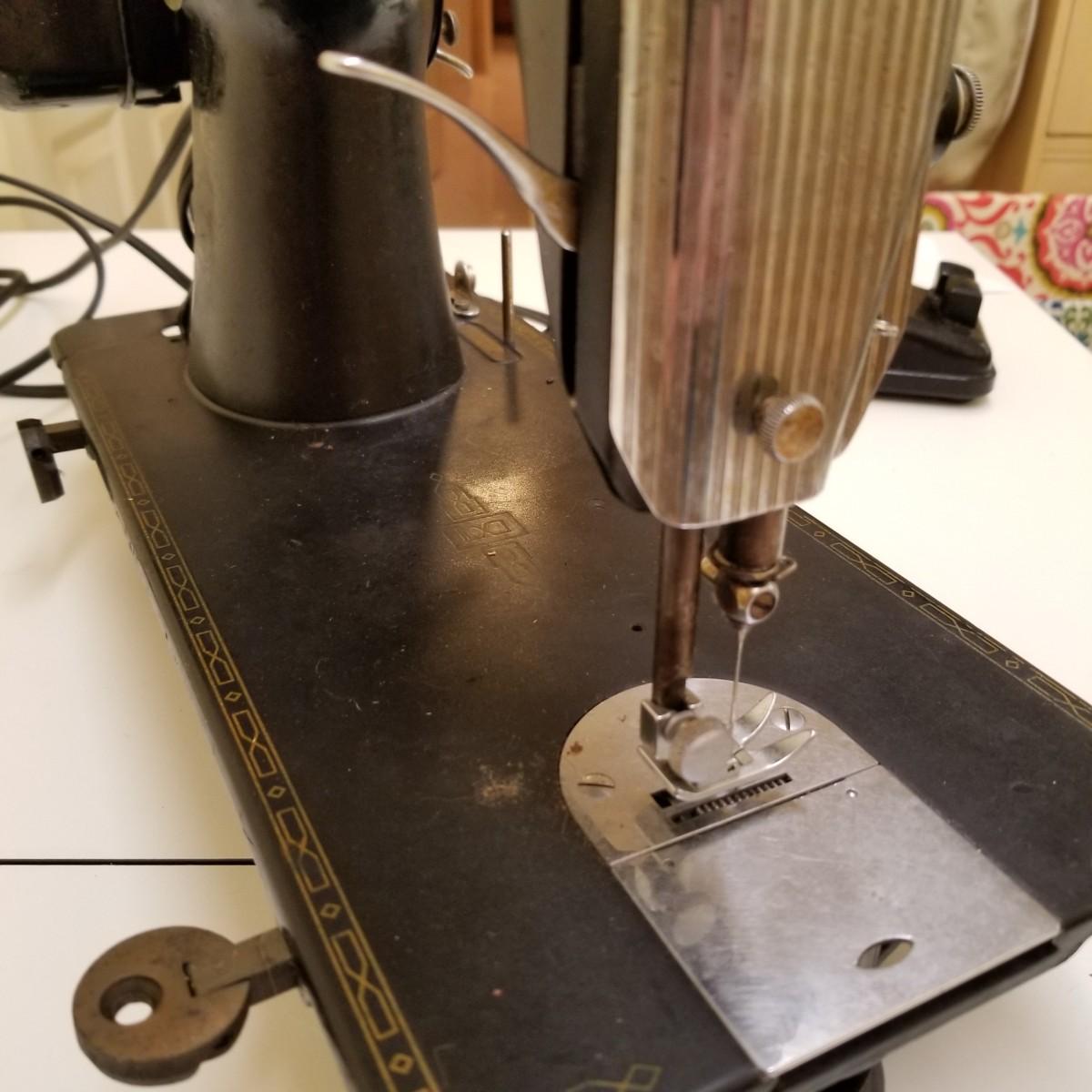From 1957 a vintage Singer 201 cabinet model machine. Original footpedal, machine works well, and is very weighty. See photos for details. Shipping available.