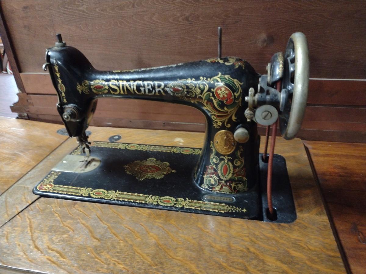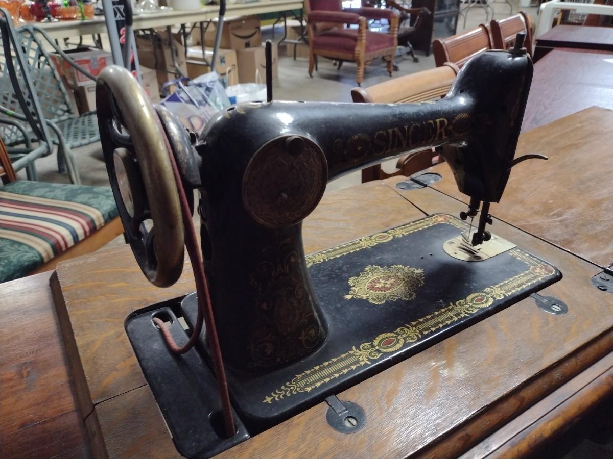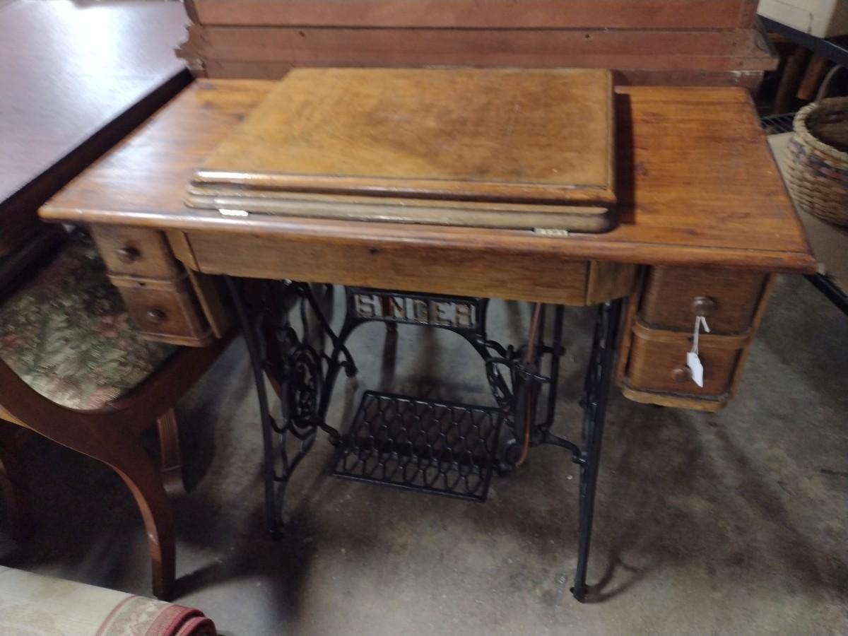Antique Treadle Cast Body Singer Sewing Machine and Cabinet