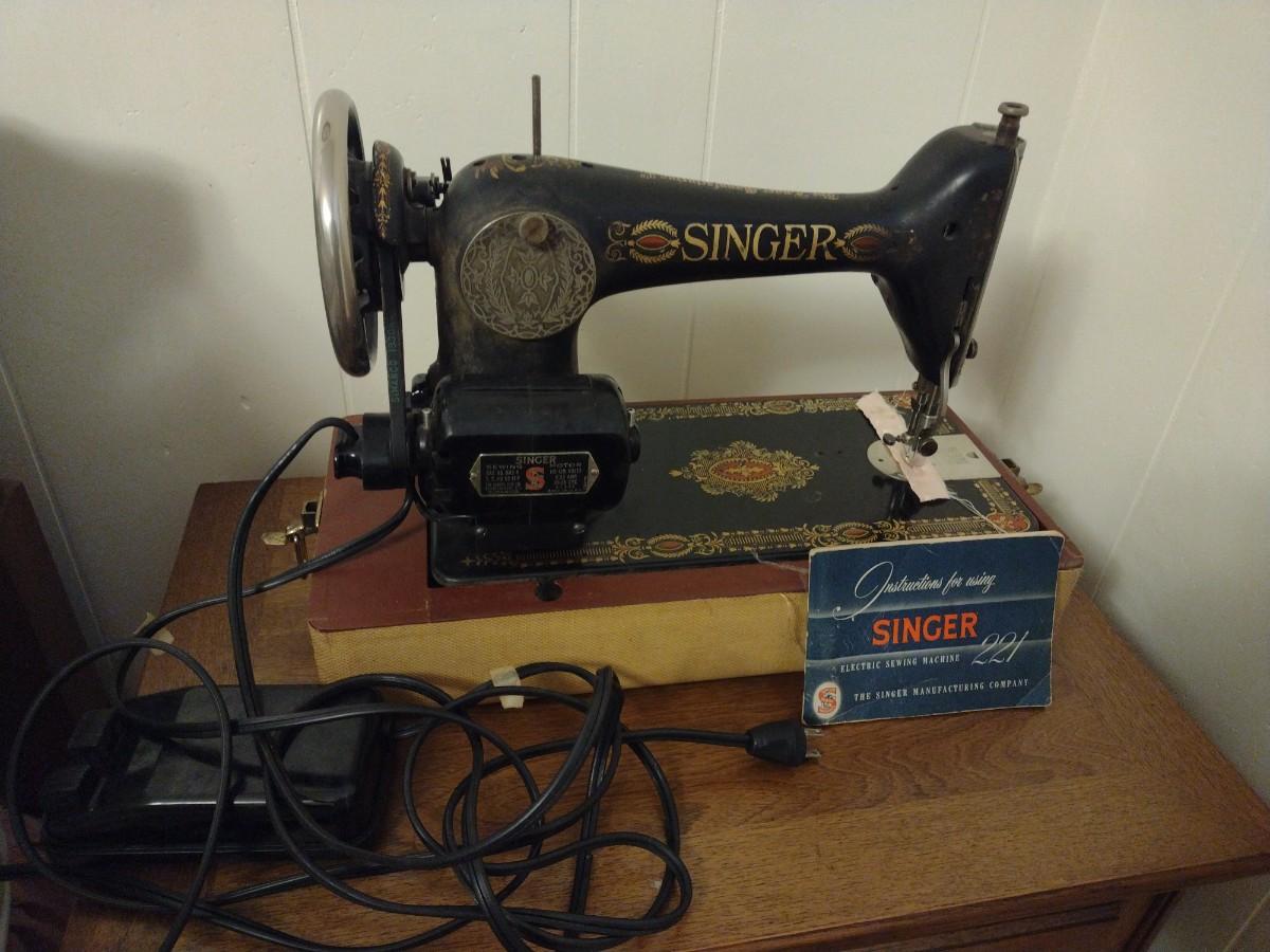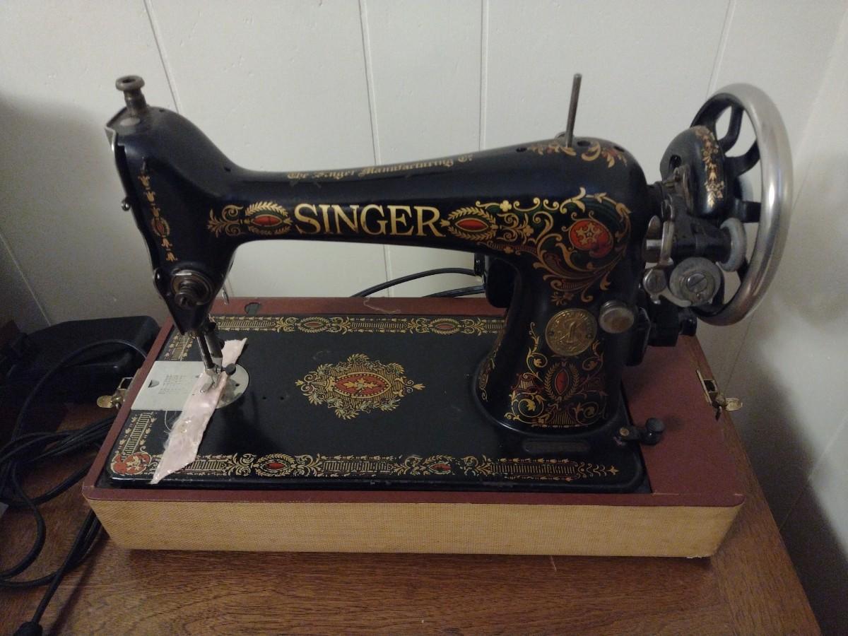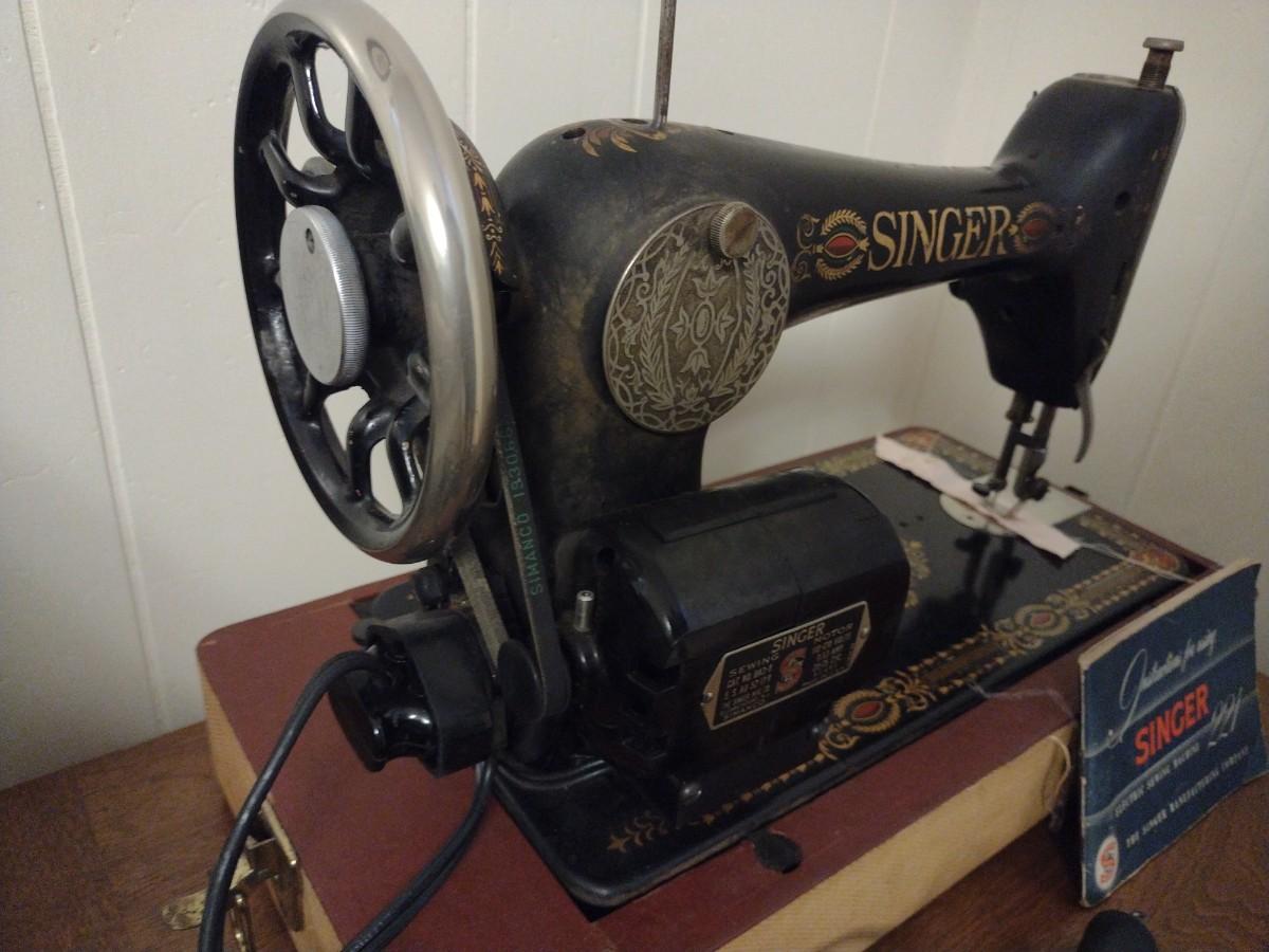Antique Cast Body Singer Sewing Machine in Carry Case #G3321424